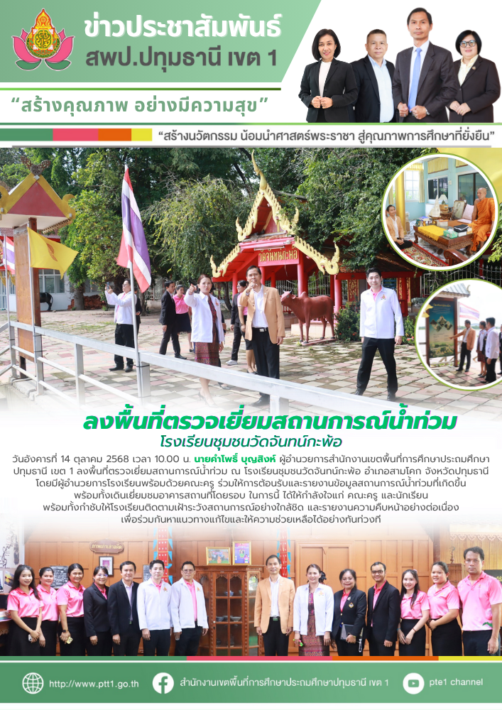 ลงพื้นที่ตรวจเยี่ยมสถานการณ์น้ำท่วม โรงเรียนชุมชนวัดจันทน์กะพ้อ