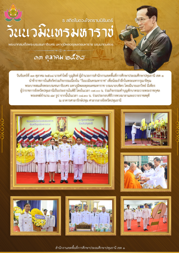 ร่วมกิจกรรมเนื่องใน “วันนวมินทรมหาราช” เพื่อน้อมรำลึกในพระมหากรุณาธิคุณ พระบาทสมเด็จพระบรมชนกาธิเบศร มหาภูมิพลอดุลยเดชมหาราช บรมนาถบพิตร