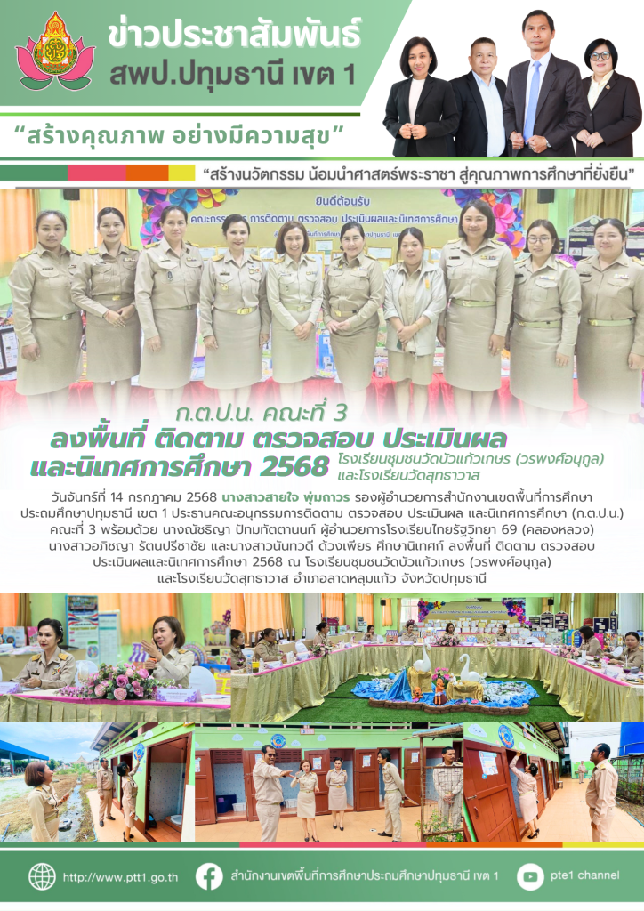 ก.ต.ป.น. คณะที่ 3 ลงพื้นที่ ติดตาม ตรวจสอบ ประเมินผลและนิเทศการศึกษา โรงเรียนชุมชนวัดบัวแก้วเกษร (วรพงศ์อนุกูล) และโรงเรียนวัดสุทธาวาส