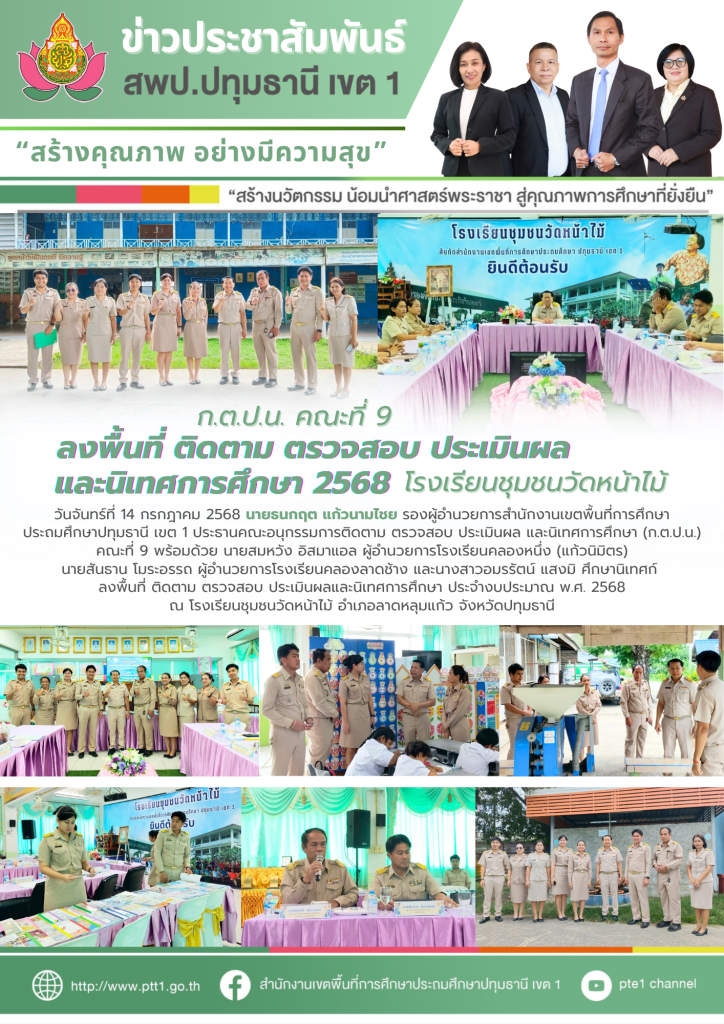 ก.ต.ป.น. คณะที่ 9 ลงพื้นที่ ติดตาม ตรวจสอบ ประเมินผลและนิเทศการศึกษา โรงเรียนชุมชนวัดหน้าไม้