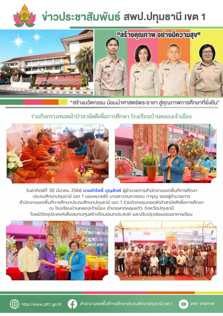 กิจกรรมเข้าแถวเคารพธงชาติ สวดมนต์ไหว้พระ ประจำเดือนเมษายน 2568 Read More »