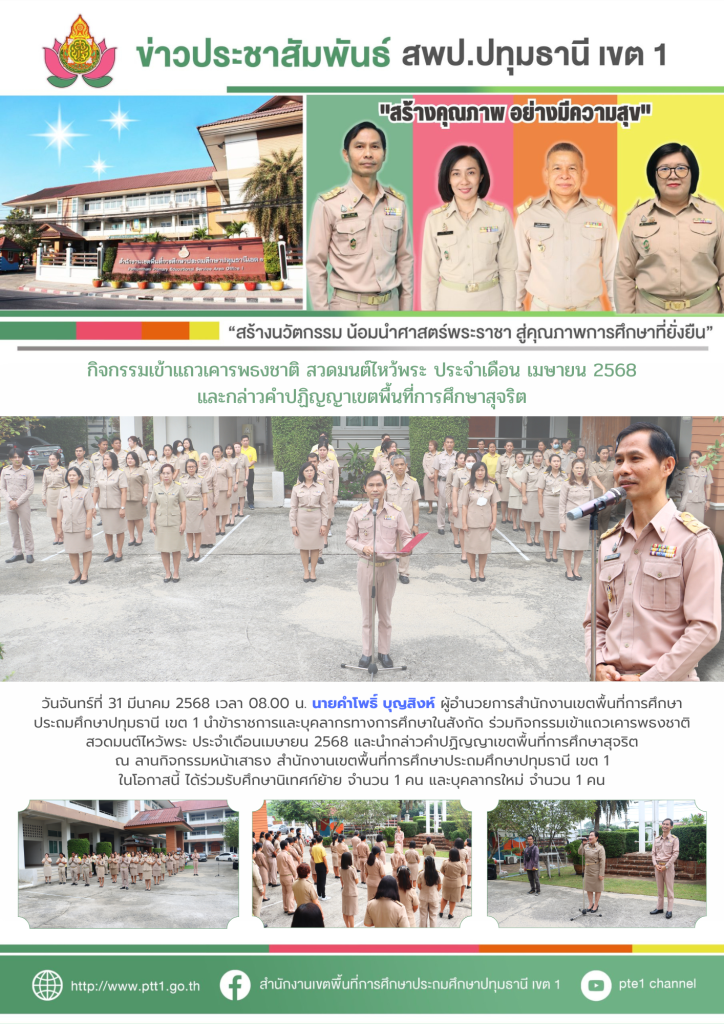 กิจกรรมเข้าแถวเคารพธงชาติ สวดมนต์ไหว้พระ ประจำเดือนเมษายน 2568