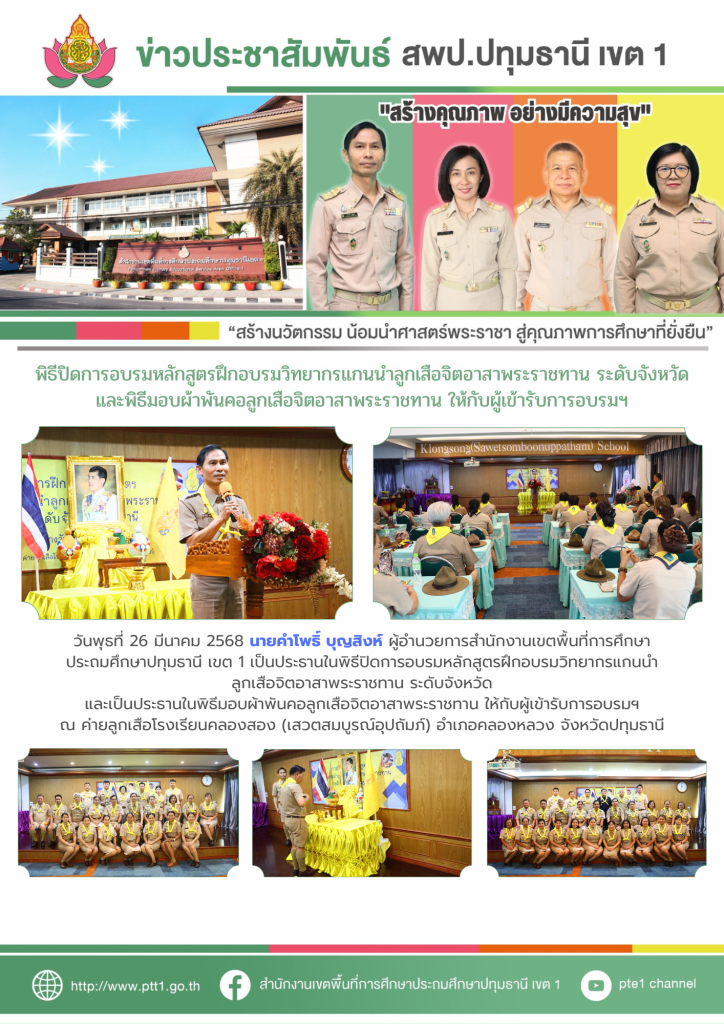 พิธีเปิดการอบรมหลักสูตรผู้กำกับลูกเสือสำรอง ขั้นความรู้เบื้องต้น (B.T.C) และหลักสูตรผู้กำกับลูกเสือสามัญ ขั้นความรู้เบื้องต้น (S.B.T.C.)