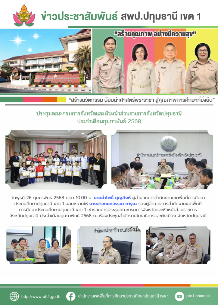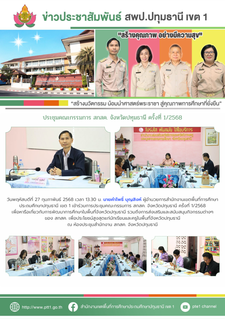 เข้าร่วมการประชุมคณะกรรมการคุ้มครองเด็ก จังหวัดปทุมธานี ครั้งที่ 1/2568