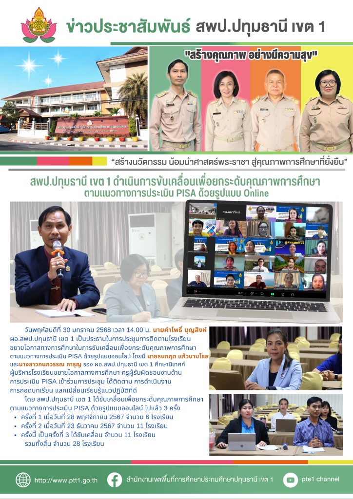 ประชุมการติดตามโรงเรียนขยายโอกาสทางการศึกษาในการขับเคลื่อนเพื่อยกระดับคุณภาพการศึกษาตามแนวทางการประเมิน PISA ด้วยรูปแบบออนไลน์
