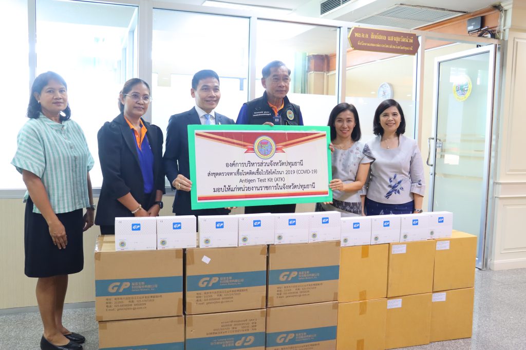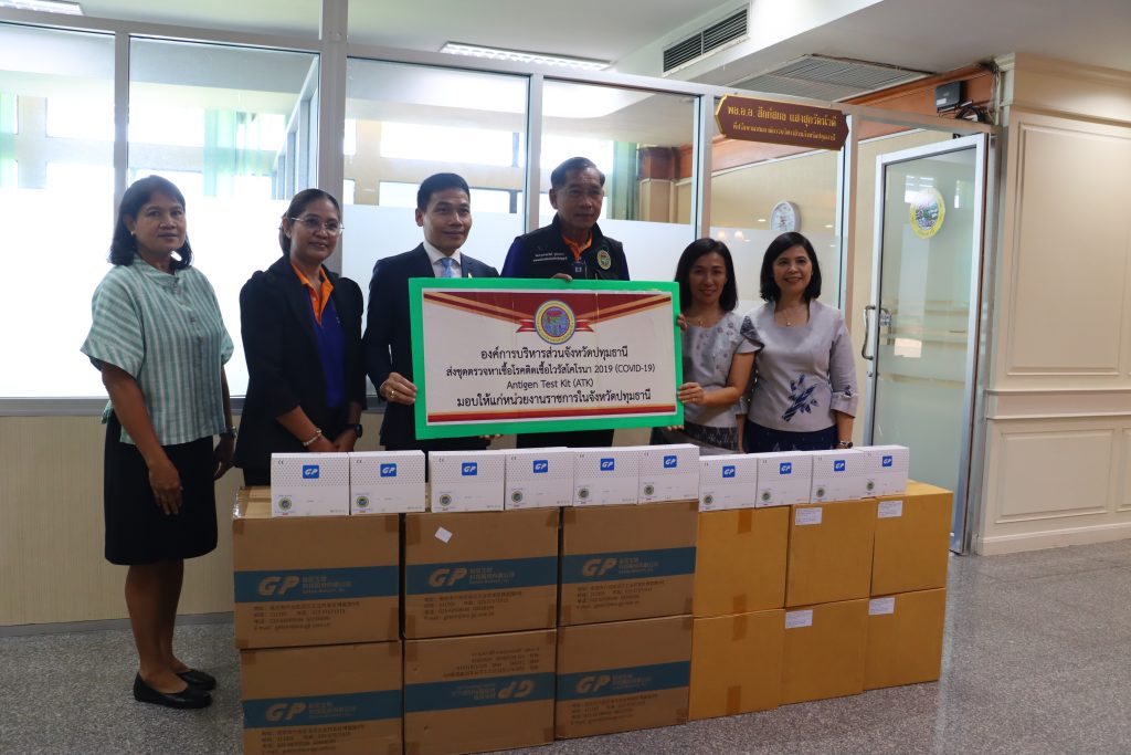 วันที่ 31 พฤษภาคม 2566 เวลา 10.30 น.ดร.กัมพล เจริญรักษ์ ผู้อำนวยการสำนักงานเขตพื้นที่การศึกษาประถมศึกษาปทุมธานี เขต 1 พร้อมด้วย นางสาวสายใจ พุ่มถาวร รองผู้อำนวยการสำนักงานเขตพื้นที่การศึกษาประถมศึกษาปทุมธานี เขต 1 นางช่อลดา ทองผิว ผู้อำนวยการกลุ่มส่งเสริมการจัดการศึกษา และเจ้าหน้าที่ที่เกี่ยงข้อง รับมอบชุดตรวจ Antigen Test Kit (ATK) จำนวน 43,427 ชุดจาก พลตำรวจโทคำรณวิทย์ ธูปกระจ่าง นายกองค์การบริหารส่วนจังหวัดปทุมธานี พร้อมด้วย นางสายสวาท เกิดสติ พยาบาลวิชาชีพชำนาญการ รักษาการในตำแหน่งหัวหน้าฝ่ายป้องกันและควบคุมโรค ณ องค์การบริหารส่วนจังหวัดปทุมธานี ในการนี้ สำนักงานเขตพื้นที่การศึกษาประถมศึกษาปทุมธานีร เขต 1 ขอขอบคุณท่านนายกองค์การบริหารส่วนจังหวัดปทุมธานี มาณ โอกาสนี้ และจะนำชุดตรวจ Antigen Test Kit (ATK) ที่ไดรับมาจัดสรรให้กับโรงเรียนในสังกัดต่อไป
