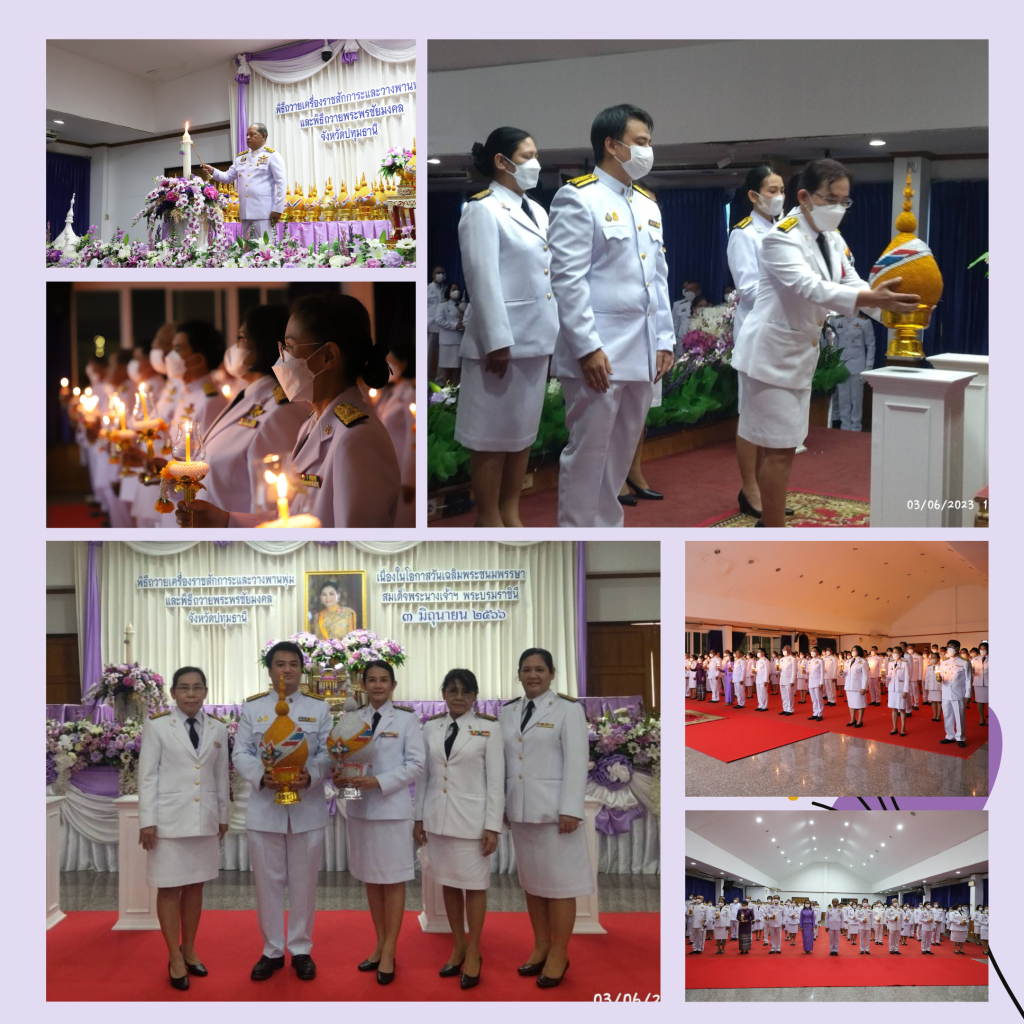 วันที่ ๓ มิถุนายน ๒๕๖๖ เวลา ๑๘.๐๐ น. ดร.กัมพล เจริญรักษ์ ผู้อำนวยการสำนักงานเขตพื้นที่การศึกษาประถมศึกษาปทุมธานี เขต ๑ มอบหมายให้ นางสาวนันทนา แสงจันทร์ ผู้อำนวยการกลุ่มบริหารงานการเงินและสินทรัพย์ พร้อมด้วย ข้าราชการในสังกัด เข้าร่วมพิธีถวายเครื่องราชสักการะและวางพานพุ่ม และพิธีจุดเทียนถวายพระพรชัยมงคล สมเด็จพระนางเจ้าฯ พระบรมราชินี เนื่องในโอกาสวัน เฉลิมพระชนมพรรษา ๓ มิถุนายน ๒๕๖๖ โดยมี นายสิทธิชัย สวัสดิ์แสน รองผู้ว่าราชการจังหวัดปทุมธานี พร้อมด้วยส่วนราชการ ศาล ทหาร ตำรวจ องค์การบริหารส่วนจังหวัด กลุ่มแม่บ้านมหาดไทย เหล่ากาชาดจังหวัด รัฐวิสาหกิจ สถานศึกษา ประชาชนทุกหมู่เหล่า เข้าร่วมพิธีฯ ณ อาคารศาลารักษ์ปทุม ศาลากลางจังหวัดปทุมธานี