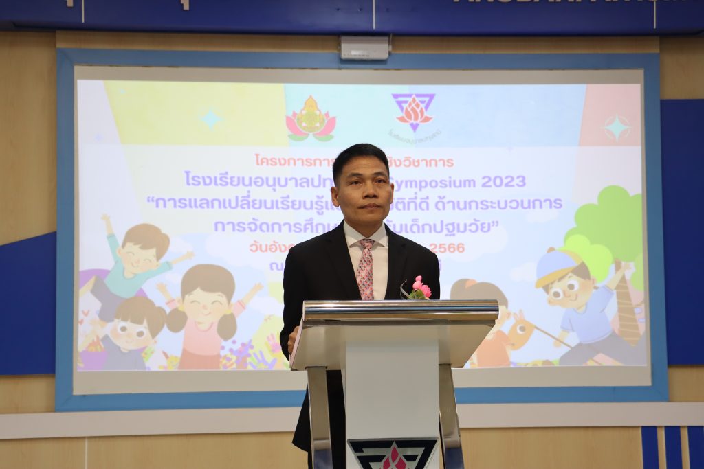 วันที่ 5 กันยายน 2566 เวลา 09.00 น. ดร.กัมพล เจริญรักษ์ ผู้อำนวยการสำนักงานเขตพื้นที่การศึกษาประถมศึกษาปทุมธานี เขต 1 เป็นประธานในพิธีเปิดและบรรยายพิเศษการประชุมเชิงวิชาการโรงเรียนอนุบาลปทุมธานี Symposium 2023 “การแลกเปลี่ยนเรียนรู้แนวปฏิบัติที่ดี ด้านกระบวนการจัดการศึกษาสำหรับเด็กปฐมวัย” ณ ห้องประชุมอาคารสิริดรุณาภา