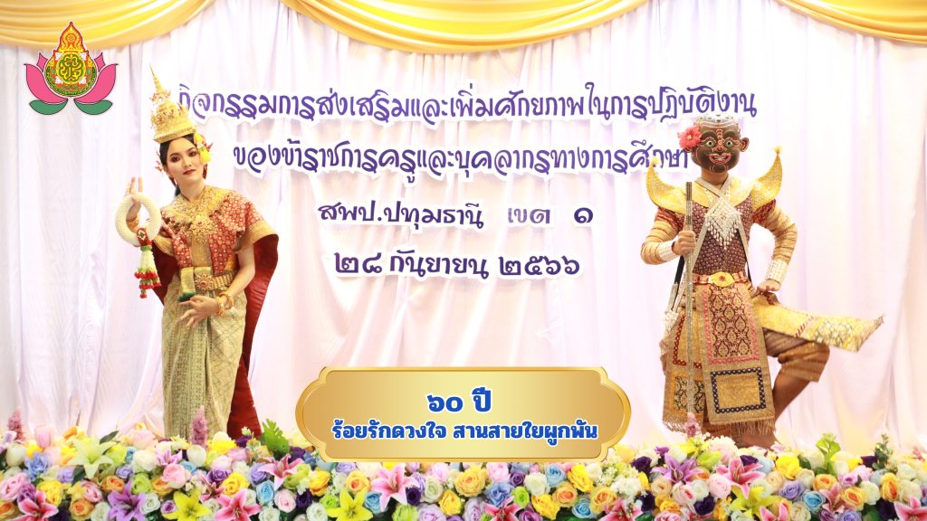 วันพฤหัสบดี ที่ 28 กันยายน 2566 สำนักงานเขตพื้นที่การศึกษาประถมศึกษาปทุมธานี เขต 1 จัดกิจกรรมการส่งเสริมและเพิ่มศักยภาพในการปฏิบัติงานของข้าราชการครูและบุคลากรทางการศึกษา ภายใต้ชื่องาน “60 ปี ร้อยรักดวงใจ สายใยผูกพัน สู่วันเกษียณที่ภาคภูมิ” เพื่อเป็นการแสดงมุทิตาจิต แก่ผู้เกษียณอายุราชการ ในปี 2566
