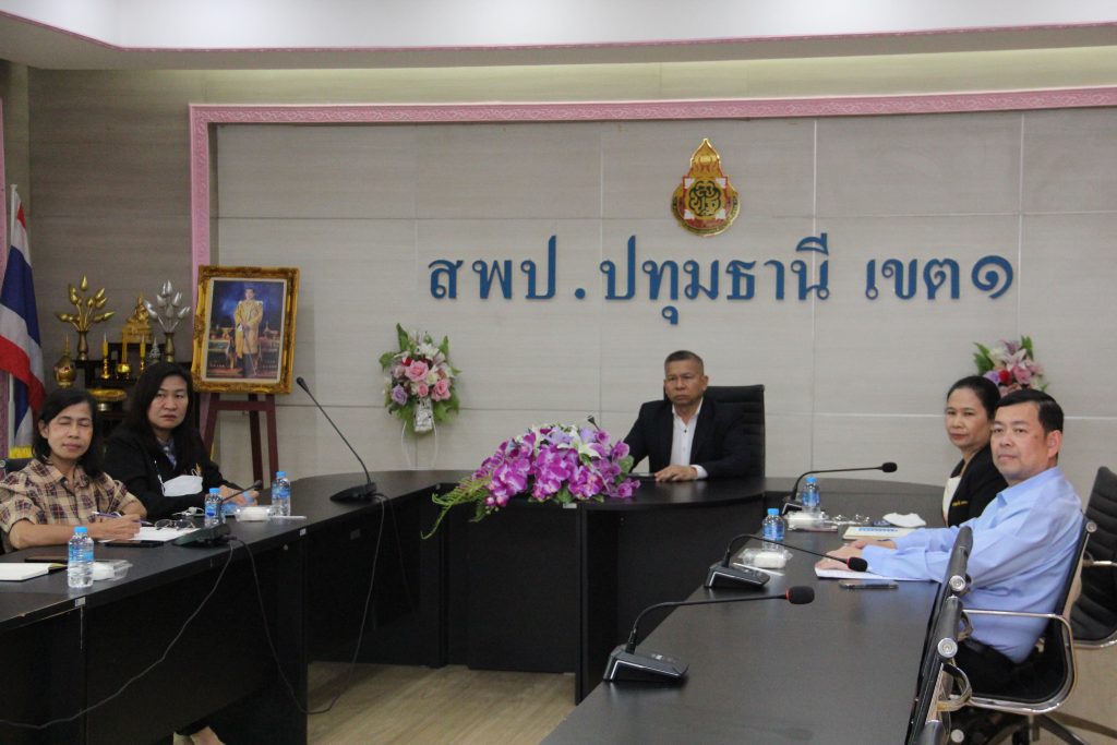 วันที่ 12 ตุลาคม พ.ศ. 2566 ดร.กัมพล เจริญรักษ์ ผู้อำนวยการสำนักงานเขตพื้นที่การศึกษาประถมศึกษาปทุมธานี เขต 1 มอบหมายให้ นายธนกฤต แก้วนามไชย รองผู้อำนวยการสำนักงานเขตพื้นที่การศึกษาประถมศึกษาปทุมธานี เขต 1 เข้าร่วมการประชุมเชิงปฏิบัติการการรายงานข้อมูลในระบบสินทรัพย์ สพฐ. (OBEC-Asset) ผ่านระบบการประชุมอิเล็กทรอนิกส์ Zoom Meeting โดยมี กลุ่มนโยบายและแผน กลุ่มบริหารงานการเงินและสินทรัพย์ และกลุ่มส่งเสริมการศึกษาทางไกลเทคโนโลยีสารสนเทศและการสื่อสาร เข้าร่วมประชุมในครั้งนี้ด้วย ณ ห้องประชุมบัวชมพู สำนักงานเขตพื้นที่การศึกษาประถมศึกษาปทุมธานี เขต 1