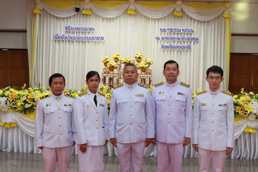 วันที่ 13 ตุลาคม พ.ศ. 2566 ดร.กัมพล เจริญรักษ์ ผู้อำนวยการสำนักงานเขตพื้นที่การศึกษาประถมศึกษาปทุมธานีเขต 1 มอบหมายให้ นายธนกฤต แก้วนามไชย รองผู้อำนวยการสำนักงานเขตพื้นที่การศึกษาประถมศึกษาปทุมธานี เขต 1 เข้าร่วมกิจกรรมเนื่องในวันนวมินทรมหาราช เวลา 06.30 น. ร่วมพิธีทำบุญตักบาตรถวายพระราชกุศล ณ บริเวณหน้าศาลากลางจังหวัดปทุมธานี จากนั้นเวลา 08.00 น. เข้าร่วมพิธีวางพวงมาลา ณ อาคารศาลารักษ์ปทุมธานี ศาลากลางจังหวัดปทุมธานี