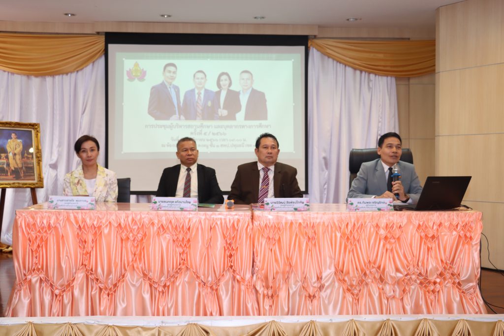 วันที่ ๙ พฤศจิกายน ๒๕๖๖ เวลา ๐๙.๐๐ น. ดร.กัมพล เจริญรักษ์ ผู้อำนวยการสำนักงานเขตพื้นที่การศึกษาประถมศึกษาปทุมธานี เขต ๑ พร้อมด้วยนายวิวัฒน์ สิรพัธน์โภคิน นางสาวสายใจ พุ่มถาวร และนายธนกฤต แก้วนามไชย รอง ผอ.สพป.ปทุมธานี เขต ๑ ร่วมประชุมผู้บริหารสถานศึกษา และบุคลากรทางการศึกษา ครั้งที่ ๕/๒๕๖๖ โดยมีผู้บริหารสถานศึกษา จำนวน ๑๐๒ โรงเรียน เข้าร่วมประชุม ในการประชุมครั้งนี้เป็นการแจ้งนโยบายเร่งด่วน และข้อราชการสำคัญ ให้กับผู้บริหารสถานศึกษาทราบ ณ ห้องประชุม กำจัด คงหนู สำนักงานเขตพื้นที่การศึกษาประถมศึกษาปทุมธานี เขต ๑