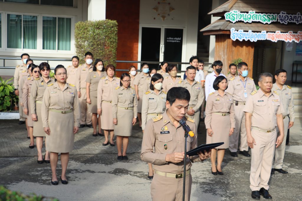 ดร.กัมพล เจริญรักษ์ ผู้อำนวยการสำนักงานเขตพื้นที่การศึกษาประถมศึกษาปทุมธานี เขต ๑ นำบุคลากรในสังกัด ร่วมกิจกรรมเข้าแถวเคารพธงชาติ สวดมนต์ไหว้พระ ประจำเดือน ธันวาคม ๒๕๖๖ และนำกล่าวคำปฏิญญา “เขตสุจริต” ในโอกาสนี้ได้ประกาศ เจตจำนงสุจริตในการบริหารงานสำนักงานเขตพื้นที่การศึกษาประถมศึกษาปทุมธานี เขต ๑ ณ ลานหน้าเสาธง สพป.ปทุมธานี เขต ๑