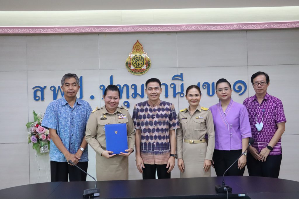 วันที่ ๘ ธันวาคม ๒๕๖๖ เวลา ๐๙.๐๐ น. ดร.กัมพล เจริญรักษ์ ผู้อำนวยการสำนักงานเขตพื้นที่การศึกษาประถมศึกษาปทุมธานี เขต ๑ เป็นประธานในการลงนามบันทึกข้อตกลงในการปฏิบัติงานในหน้าที่ผู้บริหารสถานศึกษา ระหว่าง สำนักงานเขตพื้นที่การศึกษาประถมศึกษาปทุมธานี เขต ๑ กับ ผู้อำนวยการโรงเรียนที่ได้รับการบรรจุและแต่งตั้งใหม่ พร้อมกันนี้ได้รับรายงานตัวรองผู้อำนวยการสถานศึกษาที่ได้รับการบรรจุและแต่งตั้งใหม่ จำนวน ๑ ราย ณ ห้องประชุมบัวชมพู สำนักงานเขตพื้นที่การศึกษาประถมศึกษาปทุมธานี เขต ๑