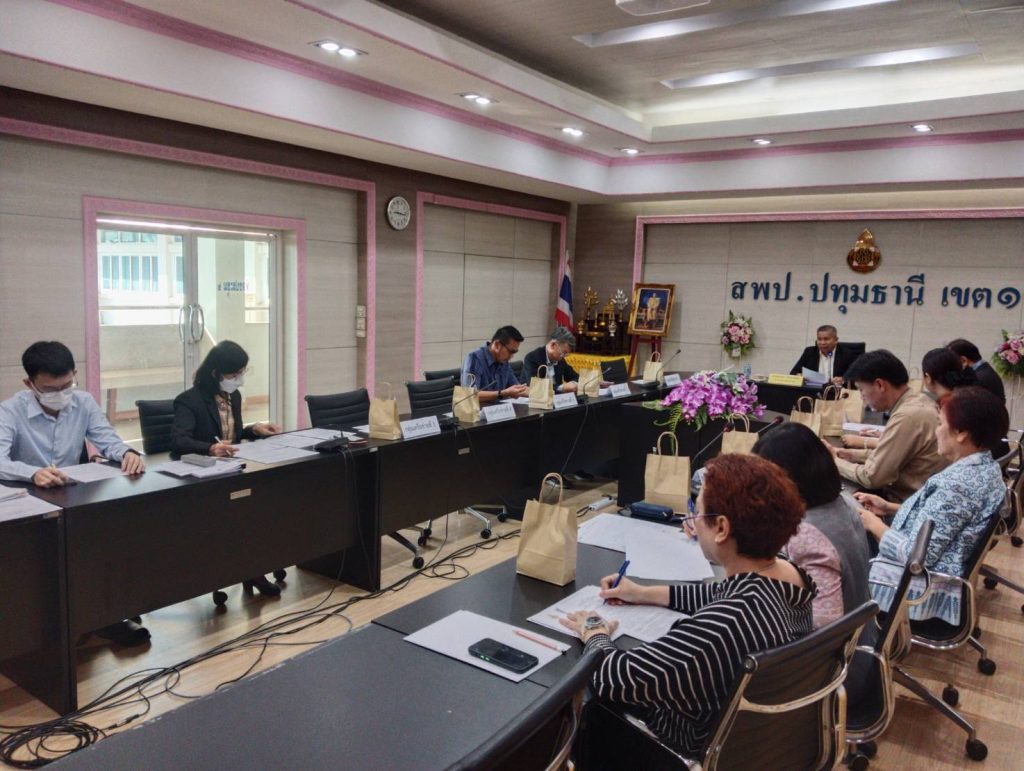 วันที่ 22 ธันวาคม 2566 เวลา 09.00 น. ดร.กัมพล เจริญรักษ์ ผู้อำนวยการสำนักงานเขตพื้นที่การศึกษาประถมศึกษาปทุมธานี เขต 1 มอบหมายให้ นายธนกฤต แก้วนามไชย รอง ผอ.สพป.ปท.1 เป็นประธานในการประชุมคณะกรรมการพิจารณาแผนชั้นเรียน รายปี และแผนชั้นเรียนเต็มรูป ระยะ 5 ปี (2565-2569) โดยมีประธานกลุ่มเครือข่ายส่งเสริมประสิทธิภาพการจัดการศึกษาทั้ง 10 กลุ่ม เข้าร่วมประชุม ณ ห้องประชุม บัวชมพู สพป.ปทุมธานี เขต 1