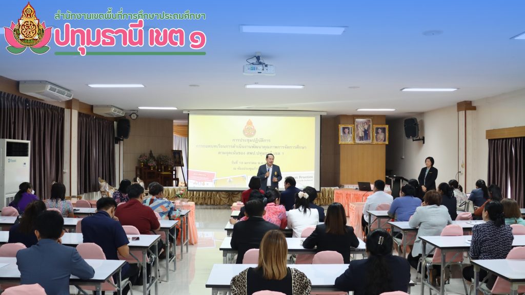 วันที่ 18 มกราคม 2567 เวลา 08.30 น. ดร.กัมพล เจริญรักษ์ ผู้อำนวยการสำนักงานเขตพื้นที่การศึกษาประถมศึกษาปทุมธานี เขต 1 มอบหมายให้ นายวิวัฒน์ สิรพัฒน์โภคิน รองผู้อำนวยการสำนักงานเขตพื้นที่การศึกษาประถมศึกษาปทุมธานี เขต 1 เป็นประธานในการประชุมปฏิบัติการดำเนินงานพัฒนาคุณภาพการจัดการศึกษาตามจุดเน้นของสำนักงานเขตพื้นที่การศึกษาประถมศึกษาปทุมธานี เขต 1 โดยมี นางสุรัสวดี จันทรกุล ผู้อำนวยการกลุ่มนิเทศ ติดตามและประเมินผลการจัดการศึกษา เป็นวิทยากรในการประชุม ณ ห้องประชุมกำจัด คงหนู สำนักงานเขตพื้นที่การศึกษาประถมศึกษาปทุมธานี เขต 1