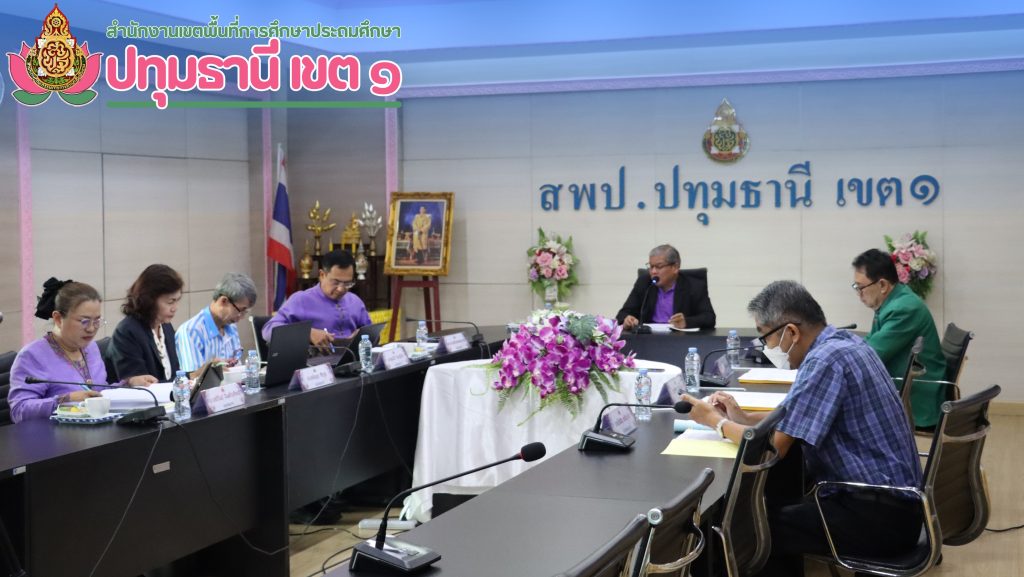 วันที่ 15 กุมภาพันธ์ 2567 เวลา 09.00 น. สำนักงานเขตพื้นที่การศึกษาประถมศึกษาปทุมธานี เขต 1 นำโดยนายบัณฑิตย์ ศรีพุทธางกูร ประธาน อ.ก.ค.ศ.เขตพื้นที่การศึกษาประถมศึกษาปทุมธานี เขต 1 นายวิวัฒน์ สิรพัธน์โภคิน รอง ผอ.สพป.ปทุมธานี เขต 1 รักษาราชการแทน ผอ.สพป.ปทุมธานี เขต 1 (เลขานุการ อ.ก.ค.ศ.เขตพื้นที่การศึกษาประถมศึกษาปทุมธานี เขต 1) พร้อมด้วย อ.ก.ค.ศ.เขตพื้นที่การศึกษาประถมศึกษาปทุมธานี เขต 1 และเจ้าหน้าที่ที่เกี่ยวข้อง ร่วมประชุมคณะอนุกรรมการข้าราชการครูและบคลากรทางการศึกษาเขตพื้นที่การศึกษาประถมศึกษาปทุมธานี เขต 1 ครั้งที่ 4/2567 ณ ห้องประชุมบัวชมพู ชั้น 3 สำนักงานเขตพื้นที่การศึกษาประถมศึกษาปทุมธานี เขต 1