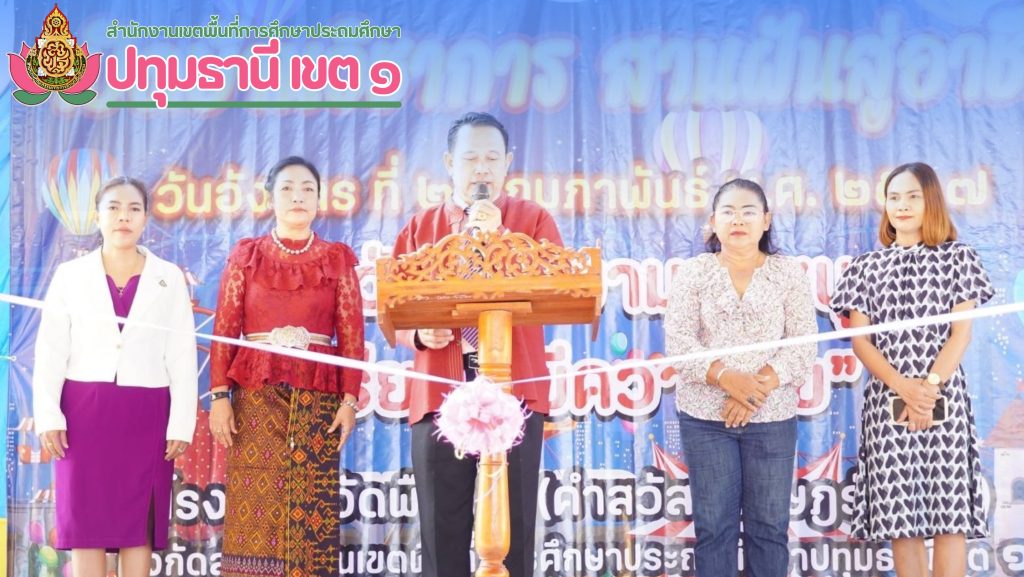 วันที่ 20 กุมภาพันธ์ 2567 เวลา 08.30 น. ดร.กัมพล เจริญรักษ์ ผู้อำนวยการสำนักงานเขตพื้นที่การศึกษาประถมศึกษาปทุมธานี เขต 1 มอบหมายให้ นายวิวัฒน์ สิรพัธน์โภคิน รองผู้อำนวการสำนักงานเขตพื้นที่การศึกษาประถมศึกษาปทุมธานี เขต 1 เป็นประธานในพิธีเปิดกิจกรรม “เปิดบ้านวิชาการ สานฝันสู่อาชีพ” ประจำปีการศึกษา 2566 ณ โรงเรียนวัดพืชนิมิต(คำสวัสดิ์ราษฎร์บำรุง) อำเภอคลองหลวง จังหวัดปทุมธานี