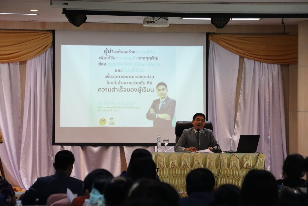 วันพุธที่ 27 มีนาคม 2567 เวลา 08.30 น. ณ ห้องประชุมกำจัด คงหนู สำนักงานเขตพื้นที่การศึกษาประถมศึกษาปทุมธานี เขต 1 ดร.กัมพล เจริญรักษ์ ผอ. สพป. ปทุมธานี เขต 1 เป็นประธานในการประชุมสัมนาผู้บริหารสถานศึกษาและบุคลากรทางการศึกษา ครั้งที่ 2/2567 เพื่อมอบนโยบาย, รับฟังปัญหา และแนวทางการบริหาร ในโอกาสนี้คณะผู้บริหารมอบช่อดอกไม้แสดงความยินดี แด่ ดร.กัมพล เจริญรักษ์ เนื่องในโอกาสได้รับเลื่อนวิทยฐานะเป็น ผู้อำนวยการเชี่ยวชาญ และในช่วงท้ายของการประชุมทางคณะผู้บริหาร บมจ. เวิร์คพอยท์ เอ็นเทอร์เทนเมนท์ ได้มอบสื่อ DVD ซีรีย์ “พระพุธเจ้า มหาศาสดาโลก” เพื่อใช้เป็นสื่อ