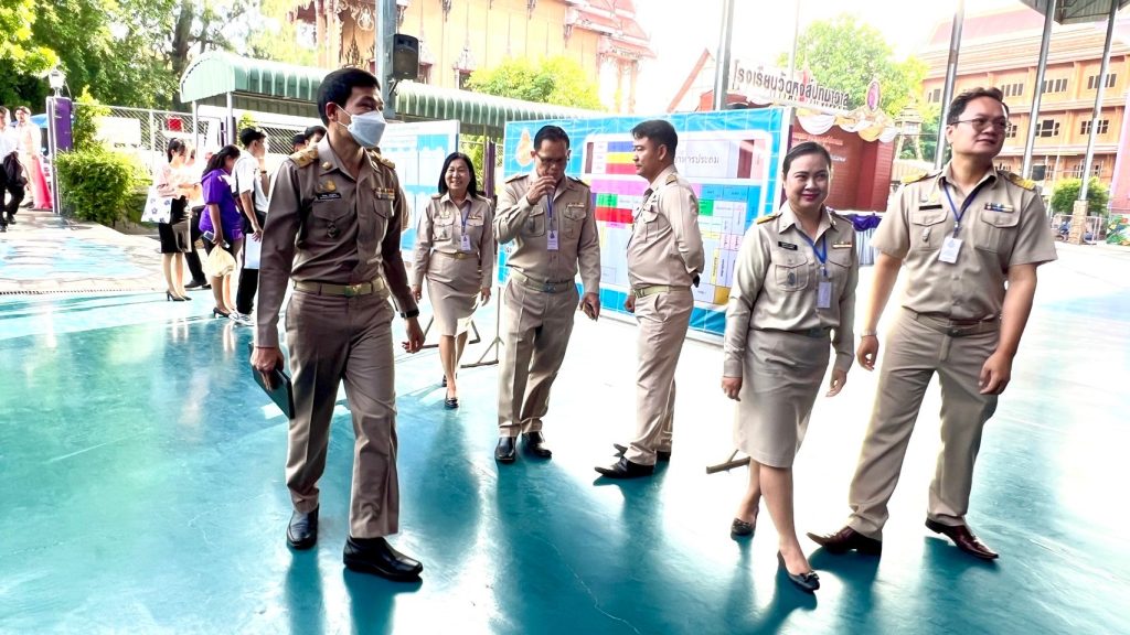 วันที่ 8 มิถุนายน 2567 เวลา 07.00 น. ดร.กัมพล เจริญรักษ์ ผู้อำนวยการสำนักงานเขตพื้นที่การศึกษาประถมศึกษาปทุมธานี เขต 1 เป็นประธานในการประชุมคณะกรรมการกำกับห้องสอบ ในการสอบแข่งขันเพื่อบรรจุและแต่งตั้งเข้ารับราชการเป็นข้าราชการครูและบุคลากรทางการศึกษา ตำแหน่งครูผู้ช่วย ประจำปี พ.ศ. 2567 ภาค ก (ความรู้ความสามารถทั่วไป) ณ สนามสอบโรงเรียนวัดหงส์ปทุมาวาส และในเวลา 11.00 น. ได้ลงพื้นที่กำกับ ติดตามการดำเนินการสอบฯ ณ สนามสอบโรงเรียนอนุบาลวัดบางนางบุญ และสนามสอบโรงเรียนวัดนาวง การดำเนินการจัดสอบฯ ในครั้งนี้มีผู้สมัครสอบและมีสิทธิ์สอบจำนวน 3,414 คน ผู้เข้าสอบ 3,293 คน ขาดสอบ 121 คน