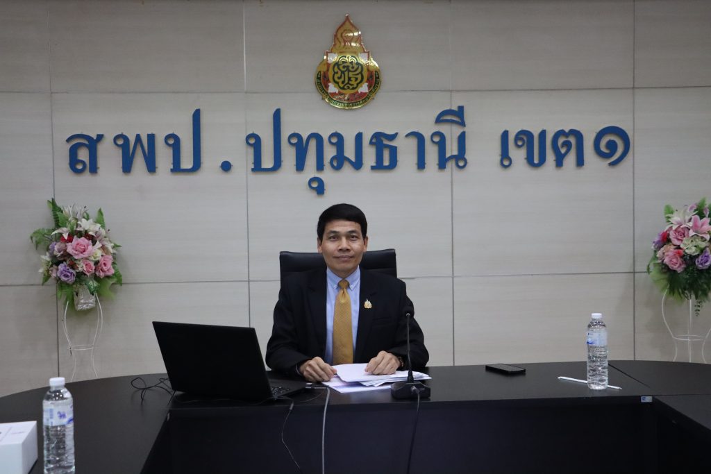 เข้าร่วมการประชุมผ่านระบบออนไลน์ การประชุมในครั้งนี้เป็นการแจ้งข้อราชการ และมอบนโยบาย จากทีมผู้บริหาร สพป.ปทุมธานี เขต 1 เพื่อนำลงสู่การปฏิบัติ