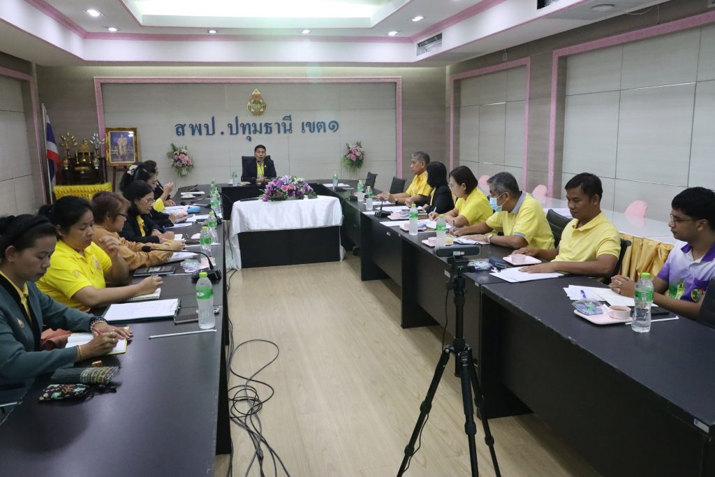 วันที่ 7 สิงหาคม 2567 ดร.กัมพล เจริญรักษ์ ผู้อำนวยการสำนักงานเขตพื้นที่การศึกษาประถมศึกษาปทุมธานี เขต 1 พร้อมด้วย นางสาวสายใจ พุ่มถาวร รอง ผอ.สพป.ปทุมธานี เขต 1 เป็นประธานในการประชุมทีมบริหารสำนักงานเขตพื้นที่การศึกษา ประกอบด้วย รองผู้อำนวยการสำนักงานเขตพื้นที่การศึกษา ผู้อำนวยการกลุ่ม ผู้อำนวยการหน่วย เพื่อแจ้งข้อราชการ สรุปผลการดำเนินงานตามภารกิจ และวางแนวทางการดำเนินงานในช่วงสิ้นปีงบประมาณ พ.ศ. 2567 ณ ห้องประชุมบัวชมพู สพป.ปทุมธานี เขต 1