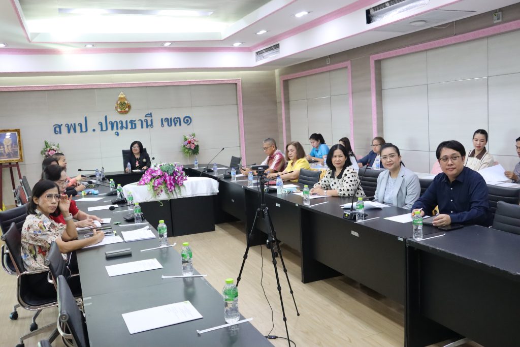 วันพฤหัสดีที่ 12 ธันวาคม 2567 เวลา 08.00 น. นางสาวสายใจ พุ่มถาวร รองผู้อำนวยการสำนักงานเขตพื้นที่การศึกษา รักษาราชการแทนผู้อำนวยการสำนักงานเขตพื้นที่การศึกษาประถมศึกษาปทุมธานี เขต 1 นำคณะผู้บริหาร ผู้อำนวยการกลุ่มทุกกลุ่ม ผู้อำนวยการหน่วยตรวจสอบภายในและศึกษานิเทศก์ ร่วมรับชมรายการพฤหัสเช้าข่าว สพฐ. ครั้งที่ 49 และประชุมทีมบริหารสำนักงานเขตพื้นที่การศึกษา เพื่อมอบนโยบายในการบริหารจัดการศึกษา ณ ห้องประชุมบัวชมพู สพป.ปทุมธานี เขต 1