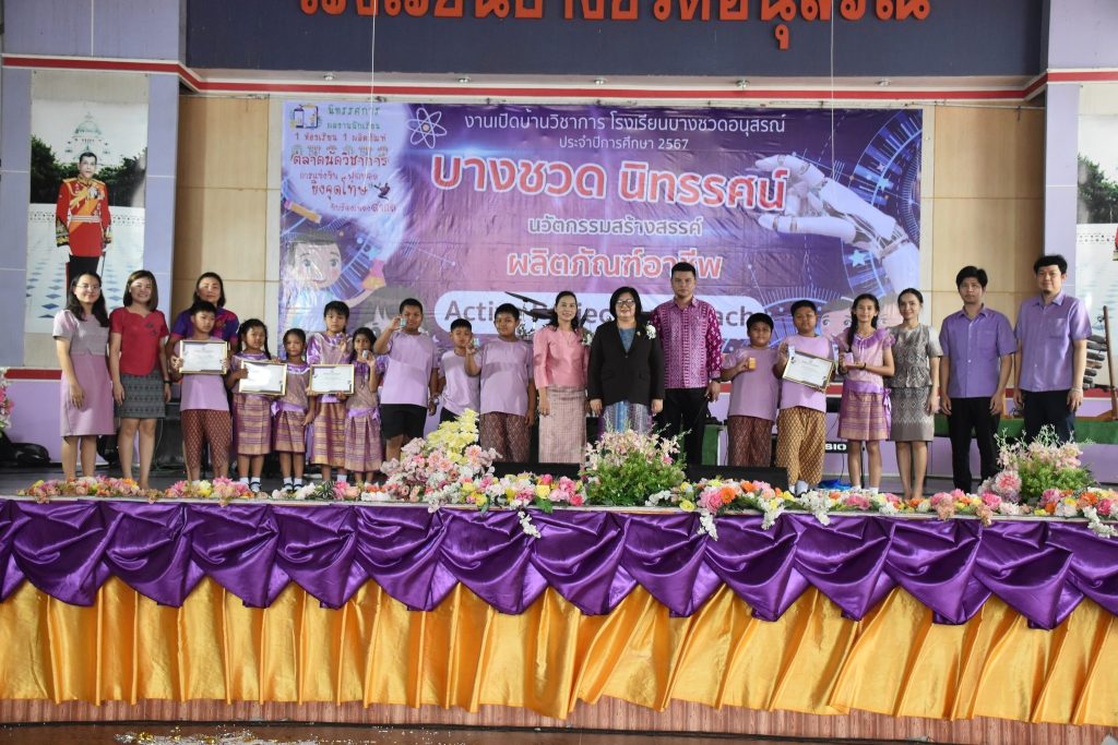 วันศุกร์ที่ 7 มีนาคม 2568 เวลา 09.00 น. นายคำโพธิ์ บุญสิงห์ ผู้อำนวยการสำนักงานเขตพื้นที่การศึกษาประถมศึกษาปทุมธานี เขต 1 มอบหมายให้ นางสาวกนกวรรณ การุญ รองผู้อำนวยการสำนักงานเขตพื้นที่การศึกษาประถมศึกษา ปทุมธานี เขต 1 เป็นประธานในพิธีเปิดกิจกรรมเปิดบ้านวิชาการ ภายใต้หัวข้อ “บางชวดนิทรรศน์ นวัตกรรมสร้างสรรค์ ผลิตภัณฑ์อาชีพ Active Project Approach ” ประจำปี 2567 เพื่อนำเสนอโครงงานผลิตภัณฑ์สร้างสรรค์จากการจัดการเรียนรู้ Active Learning สำหรับนักเรียนการศึกษาพิเศษ และระดับการศึกษาขั้นพื้นฐาน Project Approach ระดับปฐมวัย การส่งเสริมทักษะชีวิตทักษะอาชีพบูรณาการสาระการเรียนรู้ต่างๆ สู่ 1 ห้องเรียน 1 ผลิตภัณฑ์ และเป็นการแลกเปลี่ยนเรียนรู้ประสบการณ์ บรรยากาศด้านวิชาการร่วมกับชุมชนทั้งภายในและภายนอกสถานศึกษา โดยมี นางชะโลม คุ้มวงษ์ ผู้อำนวยการโรงเรียนบางชวดอนุสรณ์ กล่าวรายงาน พร้อมด้วย นายกิตติศักดิ์ ธระปราบ รองผู้อำนวยการโรงเรียนบางชวดอนุสรณ์ คณะครู บุคลากรโรงเรียนบางชวดอนุสรณ์และนักเรียนโรงเรียนบางชวดอนุสรณ์ ให้การต้อนรับและเข้าร่วมงาน ณ อาคารโดมอเนกประสงค์โรงเรียนบางชวดอนุสรณ์