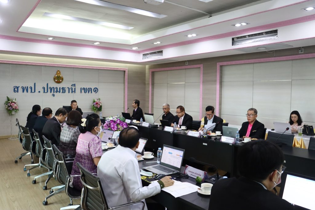 วันอังคารที่ 27 พฤษภาคม 2568 เวลา 09.00 น. สำนักงานเขตพื้นที่การศึกษาประถมศึกษาปทุมธานี เขต 1 ดำเนินการประชุมคณะอนุกรรมการข้าราชการครูและบุคลากรทางการศึกษาสำนักงานเขตพื้นที่การศึกษาประถมศึกษาปทุมธานี เขต 1 โดยมีนายศรีชัย พรประชาธรรม ประธาน อ.ก.ค.ศ. เขตพื้นที่การศึกษาประถมศึกษาปทุมธานี เขต 1 เป็นประธานในการประชุม นายคำโพธิ์ บุญสิงห์ ผู้อำนวยการสำนักงานเขตพื้นที่การศึกษาประถมศึกษาปทุมธานี เขต 1 กรรมการและเลขานุการ พร้อมด้วย อ.ก.ค.ศ. เขตพื้นที่การศึกษาประถมศึกษาปทุมธานี เขต 1 และเจ้าหน้าที่ที่เกี่ยวข้อง เข้าร่วมประชุม ณ ห้องประชุมบัวชมพู สำนักงานเขตพื้นที่การศึกษาประถมศึกษาปทุมธานี เขต 1