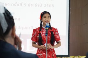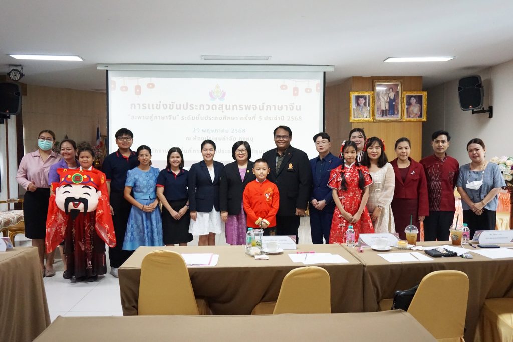 วันพฤหัสบดีที่ 29 พฤษภาคม 2568 เวลา 09.00 น. นายคำโพธิ์ บุญสิงห์ ผู้อำนวยการสำนักงานเขตพื้นที่การศึกษาประถมศึกษาปทุมธานี เขต 1 มอบหมายให้ นางสาวกนกวรรณ การุญ รองผู้อำนวยการสำนักงานเขตพื้นที่การศึกษาประถมศึกษาปทุมธานี เขต 1 เป็นประธานในพิธีเปิดการแข่งขันประกวดสุนทรพจน์และความรู้ภาษาจีน “สะพานสู่ภาษาจีน” ระดับชั้นประถมศึกษา ครั้งที่ 5 ประจำปี 2568 ตามโครงการพัฒนาการจัดการเรียนรู้ภาษาต่างประเทศ (ภาษาจีน) โดยใช้กระบวนการ Active Learning โดยมีโรงเรียนส่งนักเรียนเข้าร่วมการประกวด จำนวน 4 โรงเรียน ณ ห้องประชุมกำจัด คงหนู สำนักงานเขตพื้นที่การศึกษาประถมศึกษาปทุมธานี เขต 1 ในโอกาสนี้ ได้รับเกียรติจาก นางสาวชัชญานิช สุวรรณแข รองผู้อำนวยการโรงเรียนวันครู 2502 นายณัฐพล เพ็งโสภา ครู โรงเรียนปากเกร็ด และ Mr. Moa Lefei ครูภาษาจีนชาวต่างชาติ โรงเรียนปากเกร็ด เป็นกรรมการ