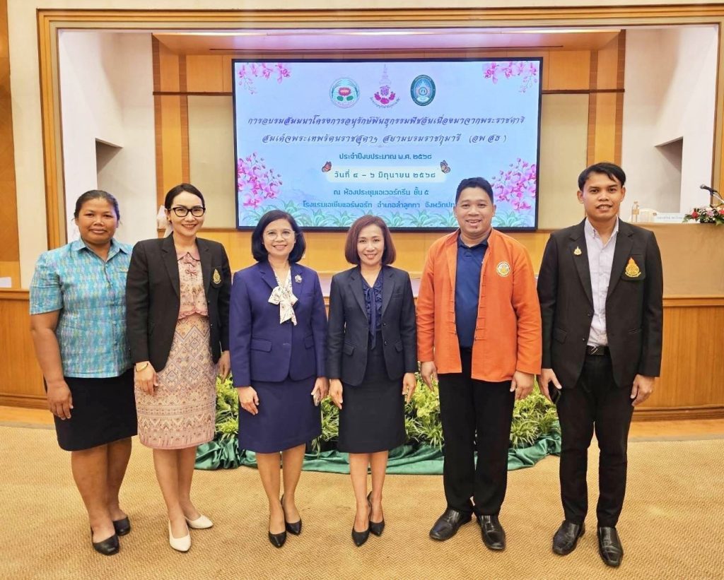 วันพฤหัสบดีที่ 5 มิถุนายน 2568 นายคำโพธิ์ บุญสิงห์ ผู้อำนวยการสำนักงานเขตพื้นที่การศึกษาประถมศึกษาปทุมธานี เขต 1 มอบหมายให้ นางสาวสายใจ พุ่มถาวร รองผู้อำนวยการสำนักงานเขตพื้นที่การศึกษาประถมศึกษาปทุมธานี เขต 1 พร้อมด้วย นางช่อลดา ทองผิว ผู้อำนวยการกลุ่มส่งเสริมการจัดการศึกษา ตัวแทนผู้บริหารสถานศึกษาและครูโรงเรียนในสังกัด เข้าร่วมการอบรมสัมมนาเชิงปฏิบัติการและชมนิทรรศการโครงการอนุรักษ์พันธุกรรมพืช อันเนื่องมาจากพระราชดำริ สมเด็จพระเทพรัตนราชสุดาฯ สยามบรมราชกุมารี (อพ.สธ.) ประจำปีงบประมาณ พ.ศ. 2568 จังหวัดปทุมธานี เพื่อส่งเสริมและสนับสนุนการดำเนินงานสวนพฤกษศาสตร์โรงเรียนและงานฐานทรัพยากรท้องถิ่น ณ ห้องประชุมเอเวอร์กรีน ชั้น 5 โรงแรมเอเชียแอร์พอร์ท อำเภอลำลูกกา จังหวัดปทุมธานี