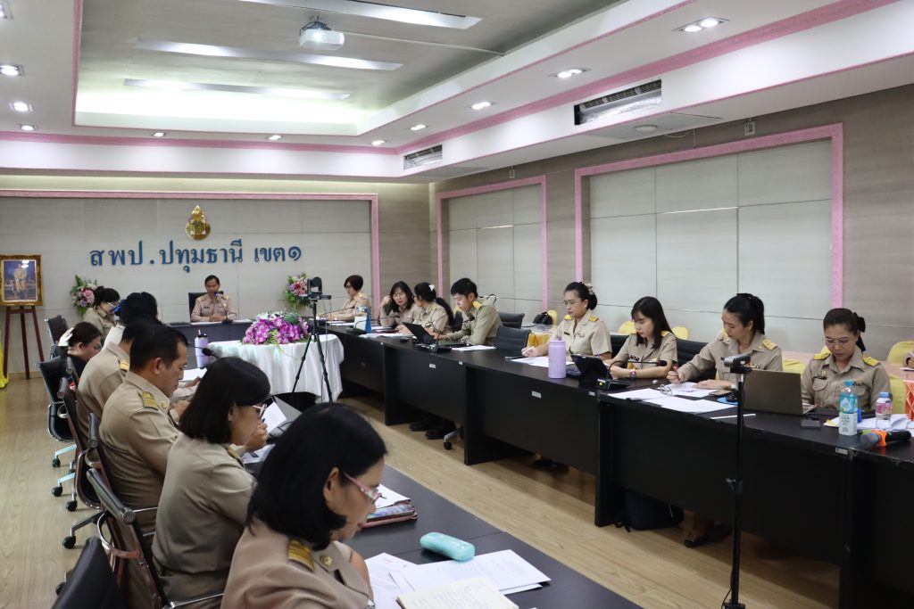 วันจันทร์ที่ 16 มิถุนายน 2568 เวลา 13.30 น. นายคำโพธิ์ บุญสิงห์ ผู้อำนวยการสำนักงานเขตพื้นที่การศึกษาประถมศึกษาปทุมธานี เขต 1 เป็นประธานการประชุมคณะกรรมการติดตาม ตรวจสอบ ประเมินผล และนิเทศการศึกษา (ก.ต.ป.น.) สำนักงานเขตพื้นที่การศึกษาประถมศึกษาปทุมธานี เขต 1 ครั้งที่ 2/2568 ผ่านระบบ Zoom Meeting เพื่อสนับสนุนและส่งเสริมประสิทธิภาพการบริหารจัดการงาน 4 ด้าน และการพัฒนางานตามนโยบายและจุดเน้นของกระทรวงศึกษาธิการ สำนักงานคณะกรรมการการศึกษาขั้นพื้นฐาน และสำนักงานเขตพื้นที่การศึกษา ณ ห้องประชุมบัวชมพู ชั้น 3 สำนักงานเขตพื้นที่การศึกษาประถมศึกษาปทุมธานี เขต 1