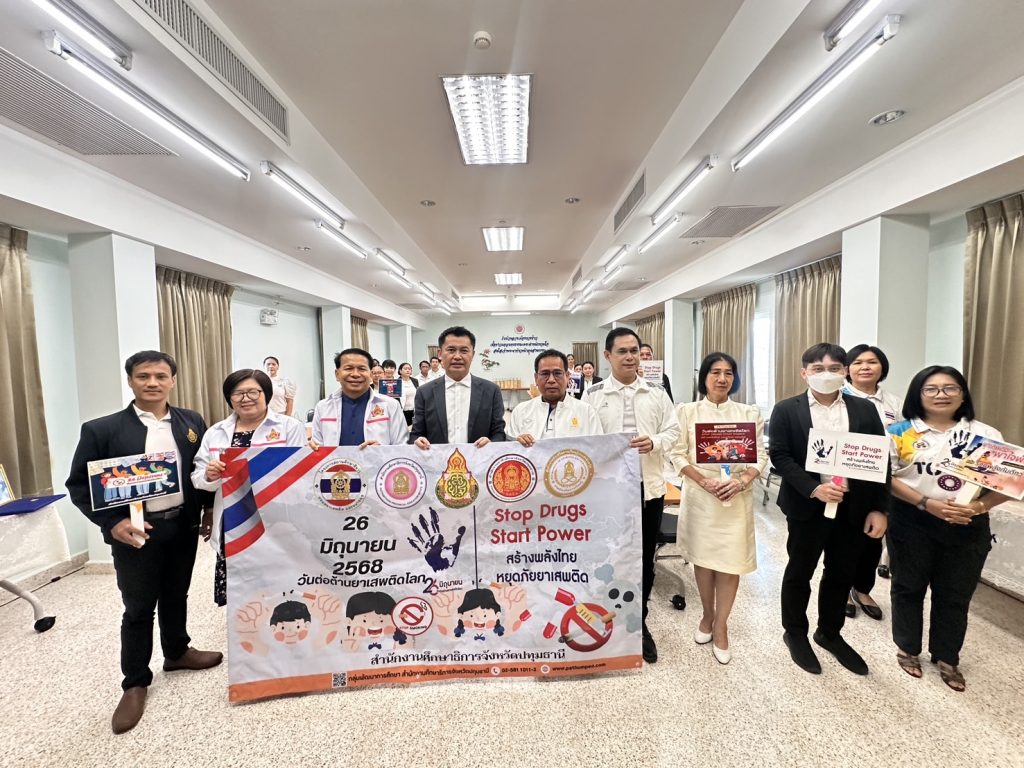 วันพฤหัสบดีที่ 3 กรกฎาคม 2568 นายคำโพธิ์ บุญสิงห์ ผู้อำนวยการสำนักงานเขตพื้นที่การศึกษาประถมศึกษาปทุมธานี เขต 1 มอบหมายให้ นายธนกฤต แก้วนามไชย และนางสาวกนกวรรณ การุญ รองผู้อำนวยการสำนักงานเขตพื้นที่การศึกษาประถมศึกษาปทุมธานี เขต 1 เข้าร่วมการประชุมสรุปผลการประเมินผลงานโครงการสถานศึกษาสีขาวปลอดยาเสพติดและอบายมุข ระดับจังหวัดปทุมธานี เพื่อสรุปผลการดำเนินงานของสถานศึกษาที่เข้าร่วมโครงการในปีที่ผ่านมา แลกเปลี่ยนแนวทางปฏิบัติที่ดี และหารือแนวทางพัฒนาการดำเนินงานในปีต่อไป ณ ห้องประชุมสำนักงานศึกษาธิการจังหวัดปทุมธานี