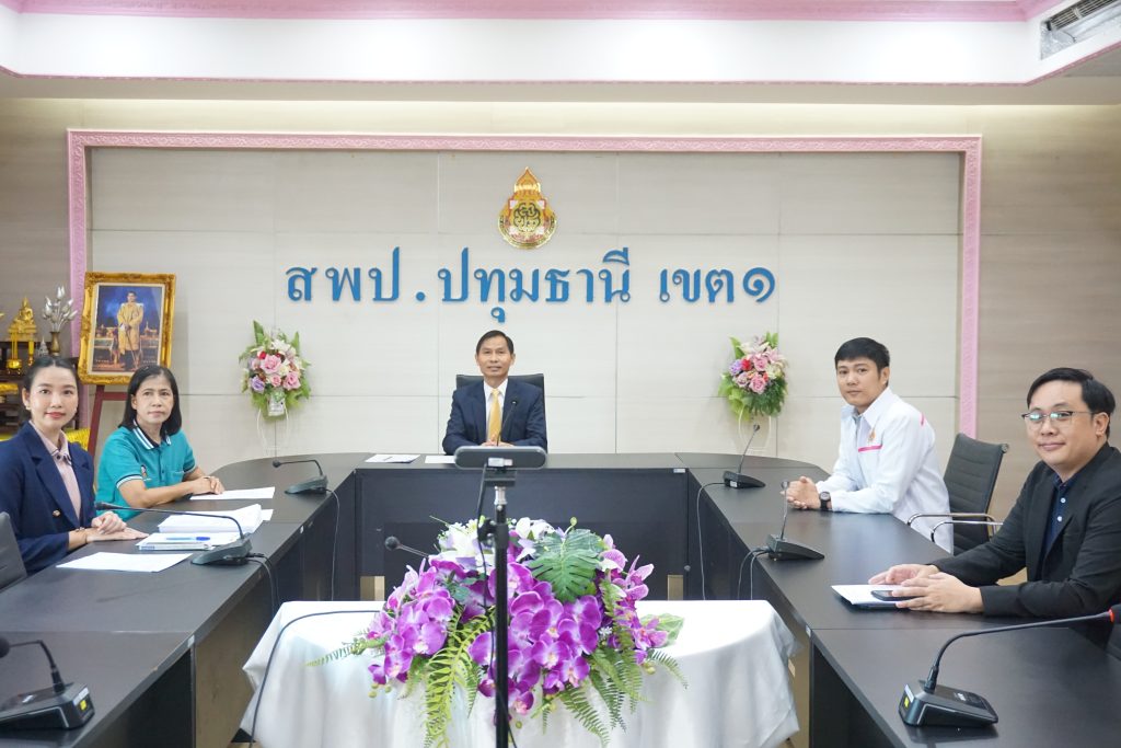 วันพฤหัสบดีที่ 14 สิงหาคม 2568 เวลา 08.00 น. นายคำโพธิ์ บุญสิงห์ ผู้อำนวยการสำนักงานเขตพื้นที่การศึกษาประถมศึกษาปทุมธานี เขต 1 พร้อมด้วยผู้อำนวยการกลุ่ม ศึกษานิเทศก์ และบุคลากร ร่วมรับชมรายการพฤหัสเช้า ข่าว สพฐ. ครั้งที่ 32/2568 ผ่านระบบออนไลน์ เพื่อรับทราบนโยบายจากสำนักงานคณะกรรมการการศึกษาขั้นพื้นฐาน (สพฐ.) นำสู่การปฏิบัติ ณ ห้องประชุมบัวชมพู สำนักงานเขตพื้นที่การศึกษาประถมศึกษาปทุมธานี เขต 1