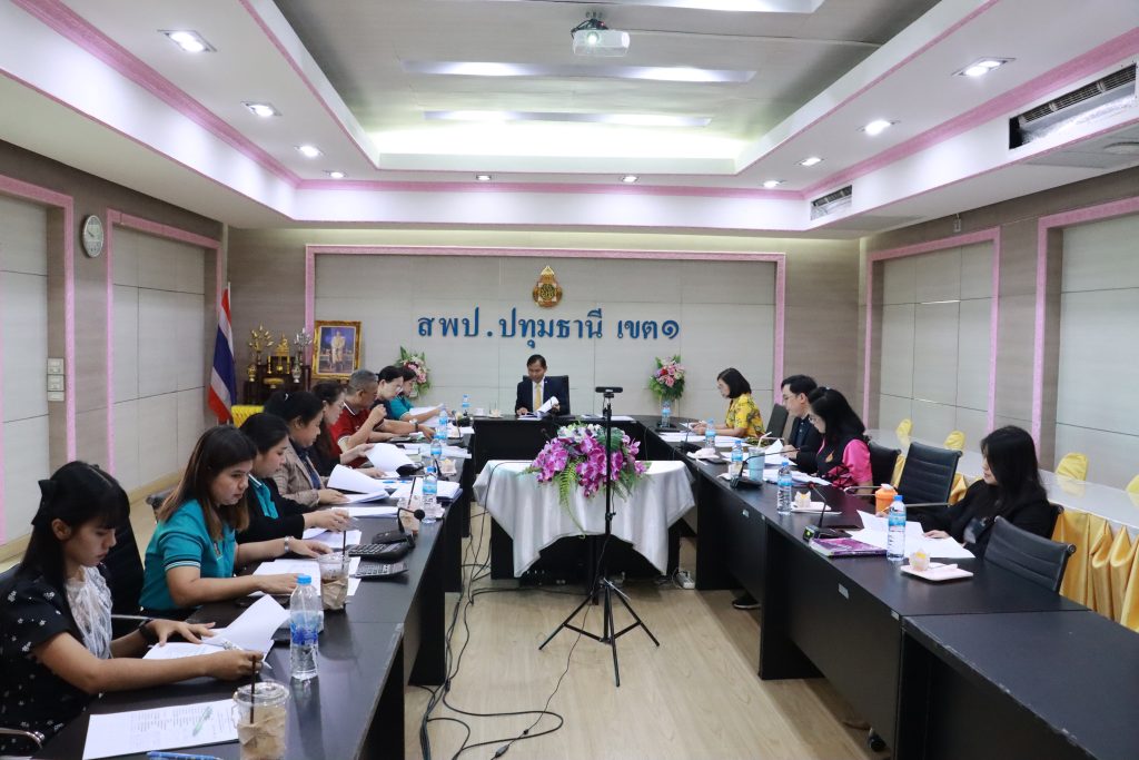 วันพฤหัสบดีที่ 14 สิงหาคม 2568 เวลา 08.30 น. นายคำโพธิ์ บุญสิงห์ ผู้อำนวยการสำนักงานเขตพื้นที่การศึกษาประถมศึกษาปทุมธานี เขต 1 เป็นประธานการประชุมคณะกรรมการพิจารณาการใช้จ่ายงบประมาณเหลือจ่าย ประจำปีงบประมาณ พ.ศ. 2569 ครั้งที่ 1/2568 โดยมีผู้อำนวยการกลุ่ม/หน่วย และบุคลากรที่เกี่ยวข้องเข้าร่วมประชุม ณ ห้องประชุมบัวชมพู สำนักงานเขตพื้นที่การศึกษาประถมศึกษาปทุมธานี เขต 1