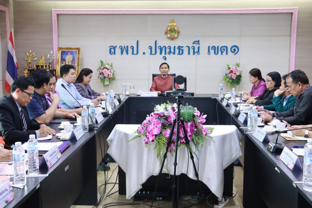 วันศุกร์ที่ 15 สิงหาคม 2568 เวลา 13.30 น. นายคำโพธิ์ บุญสิงห์ ผู้อำนวยการสำนักงานเขตพื้นที่การศึกษาประถมศึกษาปทุมธานี เขต 1 เป็นประธานการประชุมผู้บริหารสถานศึกษา และบุคลากรทางการศึกษา สำนักงานเขตพื้นที่การศึกษาประถมศึกษาปทุมธานีเขต 1 ครั้งที่ 8/2568 เพื่อแจ้งข้อราชการและติดตามผลการดำเนินงานตามนโยบาย โดยมีผู้บริหารสถานศึกษาเข้าร่วมประชุมผ่านระบบ Zoom Meeting ประธานเครือข่ายส่งเสริมประสิทธิภาพการจัดการศึกษา ผู้อำนวยการกลุ่ม/หน่วย ศึกษานิเทศก์ และบุคลากรที่เกี่ยวข้อง เข้าร่วมประชุม ณ ห้องประชุมบัวชมพู สำนักงานเขตพื้นที่การศึกษาประถมศึกษาปทุมธานี เขต 1