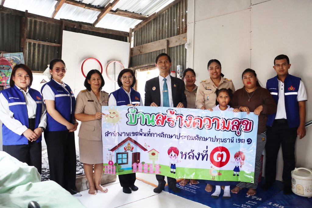 วันจันทร์ที่ 25 สิงหาคม 2568 นายคำโพธิ์ บุญสิงห์ ผู้อำนวยการสำนักงานเขตพื้นที่การศึกษาประถมศึกษาปทุมธานี เขต 1 พร้อมด้วยบุคลากรกลุ่มส่งเสริมการจัดการศึกษา ร่วมมอบบ้านตามโครงการ “บ้านสร้างความสุข” หลังที่ 3 แก่นักเรียนโรงเรียนชุมชนวัดบางกะดี โดยโครงการนี้ได้รับความร่วมมือจากครู ผู้บริหารสถานศึกษา เครือข่ายผู้ปกครอง หน่วยงานท้องถิ่น และชุมชน ร่วมกันระดมทรัพยากรในการซ่อมแซมหรือสร้างบ้านใหม่ เพื่อยกระดับคุณภาพชีวิตของนักเรียน