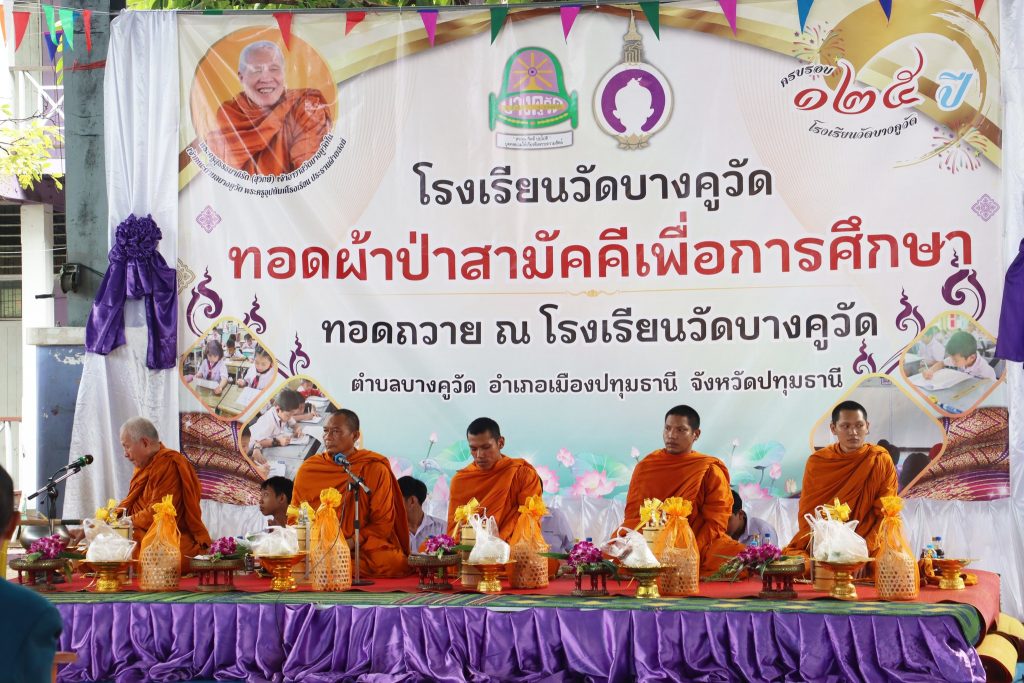 วันศุกร์ที่ 5 กันยายน 2568 เวลา 09.30 น. นายคำโพธิ์ บุญสิงห์ ผู้อำนวยการสำนักงานเขตพื้นที่การศึกษาประถมศึกษาปทุมธานี เขต 1 มอบหมายให้ นายธนกฤต แก้วนามไชย รองผู้อำนวยการสำนักงานเขตพื้นที่การศึกษาประถมศึกษาปทุมธานี เขต 1 ร่วมงานทำบุญโรงเรียนวัดบางคูวัด ครบรอบ 125 ปี และทอดผ้าป่าสามัคคีเพื่อการศึกษา โดยมีวัตถุประสงค์เพื่อระดมทรัพยากรจัดซื้อสื่อการเรียนการสอนในห้องเรียนและห้องปฏิบัติการ และเพื่อพัฒนาโรงเรียนบางคูวัดในทุกด้าน สู่การพัฒนาที่ยั่งยืน ณ โรงเรียนวัดบางคูวัด อำเภอเมืองปทุมธานี จังหวัดปทุมธานี