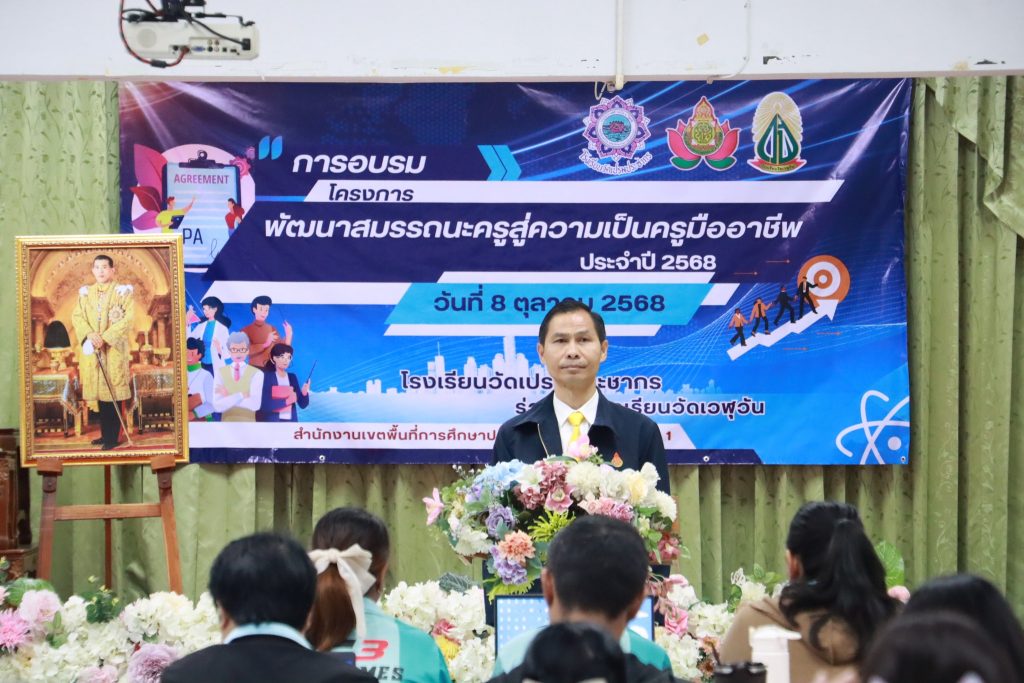 วันพุธที่ 8 ตุลาคม 2568 เวลา 08.00 น. นายคำโพธิ์ บุญสิงห์ ผู้อำนวยการสำนักงานเขตพื้นที่การศึกษาประถมศึกษาปทุมธานี เขต 1 เป็นประธานในพิธีเปิดโครงการพัฒนาสมรรถนะครูสู่ความเป็นครูมืออาชีพ ประจำปี 2568 จัดโดยโรงเรียนวัดเปรมประชากร สำนักงานเขตพื้นที่การศึกษาประถมศึกษาปทุมธานี เขต 1 มีข้าราชการครูและบุคลากรทางการศึกษาเข้ารับการอบรมจาก 2 โรงเรียน ได้แก่ โรงเรียนวัดเปรมประชากร และโรงเรียนวัดเวฬุวัน ณ ห้องประชุม อาคาร อบจ. โรงเรียนวัดเปรมประชากร อำเภอเมืองปทุมธานี จังหวัดปทุมธานี