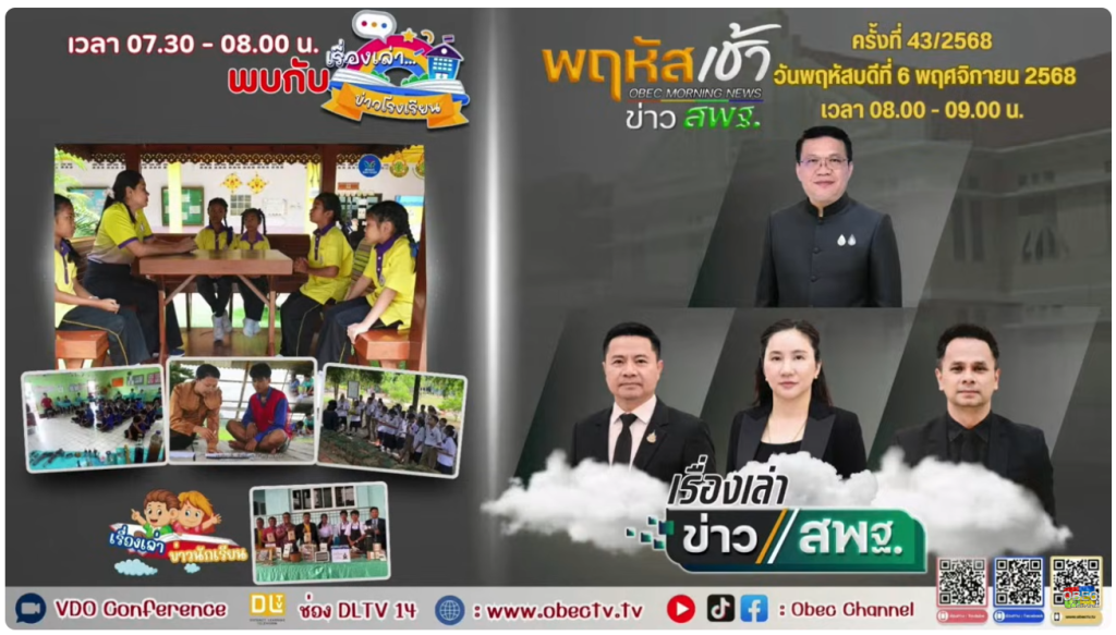 วันพฤหัสบดีที่ 6 พฤศจิกายน 2568 เวลา 08.00 น. นายคำโพธิ์ บุญสิงห์ ผู้อำนวยการสำนักงานเขตพื้นที่การศึกษาประถมศึกษาปทุมธานี เขต 1 มอบหมายให้ นางสาวกนกวรรณ การุญ รองผู้อำนวยการสำนักงานเขตพื้นที่การศึกษาประถมศึกษาปทุมธานี เขต 1 ผู้อำนวยการกลุ่ม และคณะศึกษานิเทศก์ ร่วมรับชมรายการพฤหัสเช้า ข่าว สพฐ. ครั้งที่ 43/2568 ผ่านระบบออนไลน์ เพื่อรับทราบนโยบายจากสำนักงานคณะกรรมการการศึกษาขั้นพื้นฐาน (สพฐ.) นำสู่การปฏิบัติ ณ ห้องประชุมบัวชมพู สำนักงานเขตพื้นที่การศึกษาประถมศึกษาปทุมธานี เขต 1
