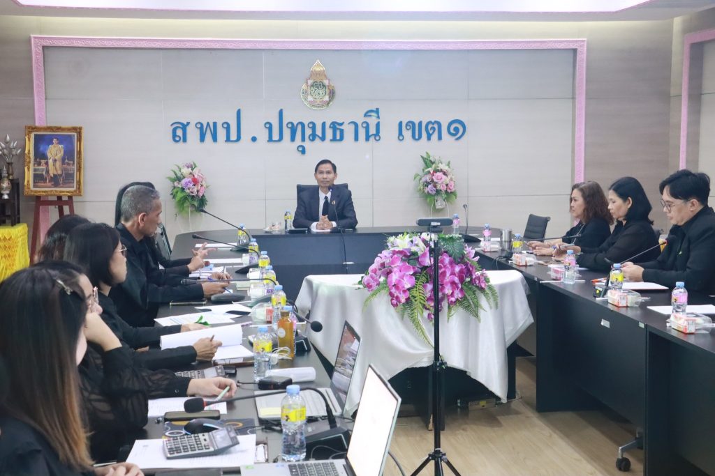 วันจันทร์ที่ 24 พฤศจิกายน 2568 เวลา 15.00 น. นายคำโพธิ์ บุญสิงห์ ผู้อำนวยการสำนักงานเขตพื้นที่การศึกษาประถมศึกษาปทุมธานี เขต 1 เป็นประธานในการประชุมคณะกรรมการพิจารณาคำขอจัดตั้งงบประมาณรายจ่ายประจำปีงบประมาณ พ.ศ. 2570 งบลงทุน ค่าครุภัณฑ์ ของสำนักงานเขตพื้นที่การศึกษาประถมศึกษาปทุมธานี เขต 1 ณ ห้องประชุมบัวชมพู สำนักงานเขตพื้นที่การศึกษาประถมศึกษาปทุมธานี เขต 1