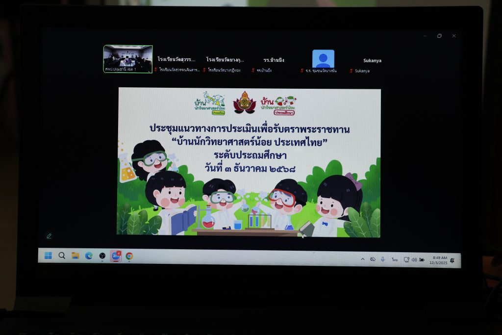 วันพุธที่ 3 ธันวาคม 2568 เวลา 09.00 น. นายคำโพธิ์ บุญสิงห์ ผู้อำนวยการสำนักงานเขตพื้นที่การศึกษาประถมศึกษาปทุมธานี เขต 1 มอบหมายให้ นางสาวกนกวรรณ การุญ รองผู้อำนวยการสำนักงานเขตพื้นที่การศึกษาประถมศึกษาปทุมธานี เขต 1 เป็นประธานเปิดการประชุมแนวทางการประเมินเพื่อขอรับตราพระราชทาน “บ้านนักวิทยาศาสตร์น้อย ประเทศไทย” ระดับประถมศึกษา เพื่อเป็นแนวทางให้โรงเรียนที่มีความพร้อมและประสงค์ขอรับการประเมินเพื่อเข้ารับตราพระราชทาน ฯ ณ ห้องประชุมบัวชมพู สำนักงานเขตพื้นที่การศึกษาประถมศึกษาปทุมธานี เขต 1 โดยมีโรงเรียนที่เข้าร่วมโครงการบ้านนักวิทยาศาสตร์น้อย ประเทศไทย ระดับประถมศึกษา รุ่นที่ 1 และรุ่นที่ 2 จำนวนทั้งสิ้น 37 โรงเรียน เข้าร่วมประชุมผ่านระบบออนไลน์