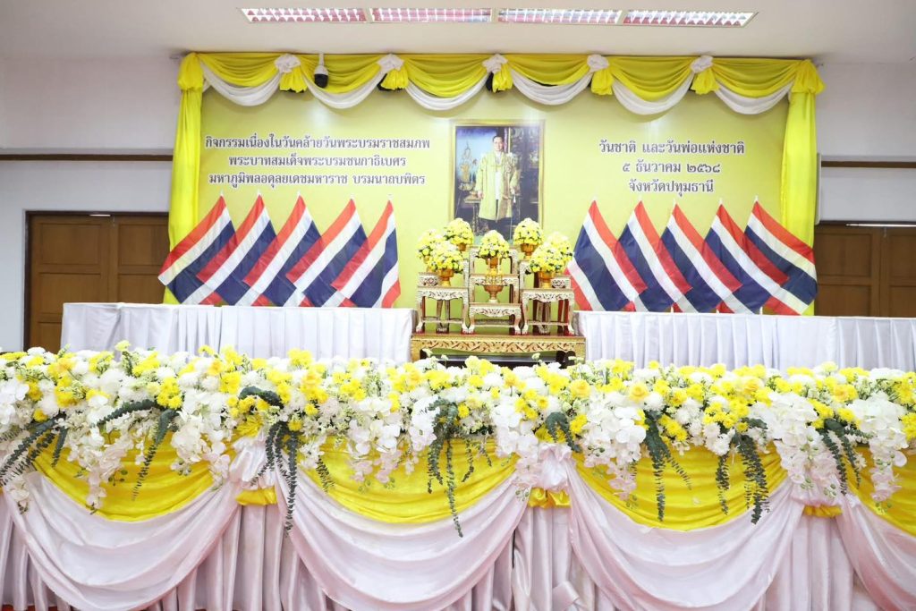 วันศุกร์ที่ 5 ธันวาคม 2568 เวลา 07.00 น. นายคำโพธิ์ บุญสิงห์ ผู้อำนวยการสำนักงานเขตพื้นที่การศึกษาประถมศึกษาปทุมธานี เขต 1 มอบหมายให้ นายธนกฤต แก้วนามไชย รองผู้อำนวยการสำนักงานเขตพื้นที่การศึกษาประถมศึกษาปทุมธานี เขต 1 พร้อมด้วยข้าราชการและบุคลากรสำนักงานเขตพื้นที่การศึกษา ร่วมกิจกรรมเนื่องในวันคล้ายวันพระบรมราชสมภพพระบาทสมเด็จพระบรมชนกาธิเบศร มหาภูมิพลอดุลยเดชมหาราช บรมนาถบพิตร วันชาติ และวันพ่อแห่งชาติ พิธีเจริญพระพุทธมนต์ ทำบุญตักบาตร พระสงฆ์และสามเณร จำนวน 89 รูป ถววายเป็นพระราชกุศล และวางพานพุ่มดอกไม้ถวายราชสักการะ โดยนายเอกวิทย์ มีเพียร ผู้ว่าราชการจังหวัดปทุมธานี เป็นประธาน ณ อาคารศาลารักษ์ปทุม ศาลากลางจังหวัดปทุมธานี