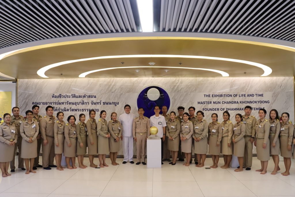 โดยวันนี้ได้นำคณะผู้เข้ารับการพัฒนาฯ เข้าศึกษาแหล่งเรียนรู้ ณ วัดพระธรรมกาย อำเภอคลองหลวง จังหวัดปทุมธานี เยี่ยมชมและศึกษาเรียนรู้ชีวประวัติและปฏิปทาคุณยายอาจารย์มหาอุบาสิกาจันทร์ขนนกยูง ผู้ให้กำเนิดวัดพระธรรมกาย เยี่ยมชมและศึกษาเรียนรู้นิทรรศการเพื่อสันติภาพโลก World Peace List Within ONE MAN’S VISION และรับฟังการบรรยายธรรม หัวข้อ “หลักพระพุทธศาสนาเพื่อการครองตน ครองคน ครองงาน สำหรับผู้บริหารสถานศึกษา” โดย พระครูภาวนาสุธรรมวิเทศ (หาญชัย อาสภกนฺโต) ผู้ช่วยเจ้าอาวาสวัดพระธรรมกาย