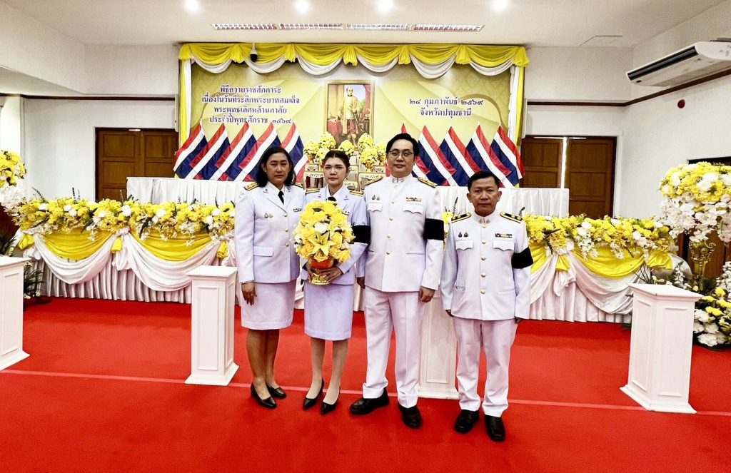 วันอังคารที่ 24 กุมภาพันธ์ 2569 เวลา 07.30 น. นายคำโพธิ์ บุญสิงห์ ผู้อำนวยการสำนักงานเขตพื้นที่การศึกษาประถมศึกษาปทุมธานี เขต 1 มอบหมายให้ ข้าราชการและบุคลากรสำนักงานเขตพื้นที่การศึกษาฯ ร่วมพิธีเนื่องในวันที่ระลึกพระบาทสมเด็จพระพุทธเลิศหล้านภาลัย เพื่อเป็นการน้อมรำลึกถึงพระมหากรุณาธิคุณของพระบาทสมเด็จพระพุทธเลิศหล้านภาลัย โดยมีนายดงพล รุจิธรรมธัช รองผู้ว่าราชการจังหวัดปทุมธานี เป็นประธาน ณ อาคารศาลารักษ์ปทุม ศาลากลางจังหวัดปทุมธานี