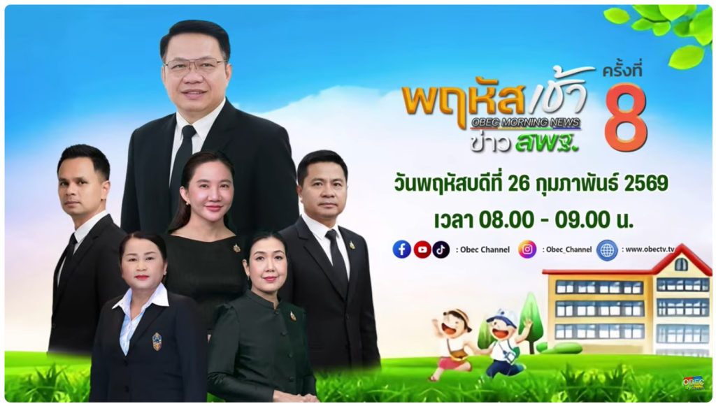 วันพฤหัสบดีที่ 26 กุมภาพันธ์ 2569 เวลา 08.00 น. นายคำโพธิ์ บุญสิงห์ ผู้อำนวยการสำนักงานเขตพื้นที่การศึกษาประถมศึกษาปทุมธานี เขต 1 มอบหมายให้ นายธนกฤต แก้วนามไชย รองผู้อำนวยการสำนักงานเขตพื้นที่การศึกษาประถมศึกษาปทุมธานี เขต 1 ผู้อำนวยการกลุ่มและคณะศึกษานิเทศก์ ร่วมรับชมรายการพฤหัสเช้า ข่าว สพฐ. ครั้งที่ 8/2569 ผ่านระบบออนไลน์ เพื่อรับทราบนโยบายจากสำนักงานคณะกรรมการการศึกษาขั้นพื้นฐาน (สพฐ.) นำสู่การปฏิบัติ ณ ห้องประชุมบัวชมพู สำนักงานเขตพื้นที่การศึกษาประถมศึกษาปทุมธานี เขต 1