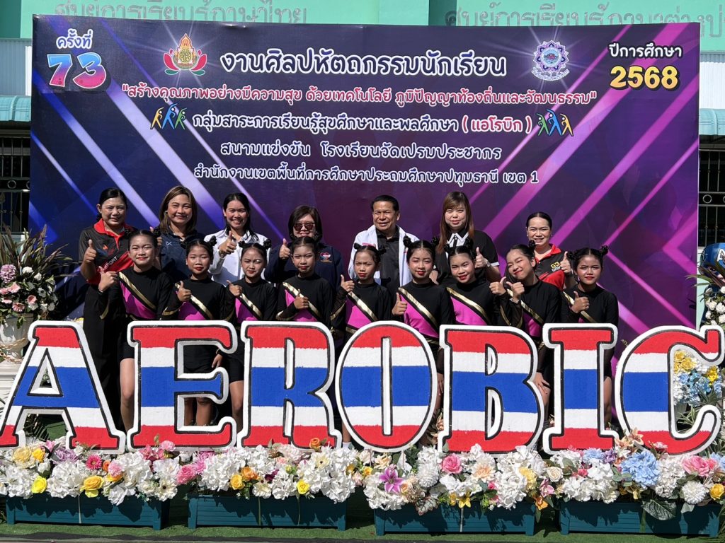 วันพุธที่ 4 มีนาคม 2569 นางสาวสายใจ พุ่มถาวร รองผู้อำนวยการสำนักงานเขตพื้นที่การศึกษาประถมศึกษาปทุมธานี เขต 1 รักษาราชการแทนผู้อำนวยการสำนักงานเขตพื้นที่การศึกษาประถมศึกษาปทุมธานี เขต 1 มอบหมายให้ นายธนกฤต แก้วนามไชย และนางสาวกนกวรรณ การุญ รองผู้อำนวยการสำนักงานเขตพื้นที่การศึกษาประถมศึกษาปทุมธานี เขต 1 ตรวจเยี่ยมสนามแข่งขันสุขศึกษาและพลศึกษา (การแข่งขันออกกำลังกายประกอบเพลง) ในการแข่งขันงานศิลปหัตถกรรมนักเรียน ครั้งที่ 73 ปีการศึกษา 2568 “สร้างคุณภาพอย่างมีความสุข ด้วยเทคโนโลยี ภูมิปัญญาและวัฒนธรรม” เพื่อให้กำลังใจผู้บริหาร คณะครู และนักเรียนที่เข้าร่วมการแข่งขัน ณ โรงเรียนวัดเปรมประชากร อำเภอเมืองปทุมธานี