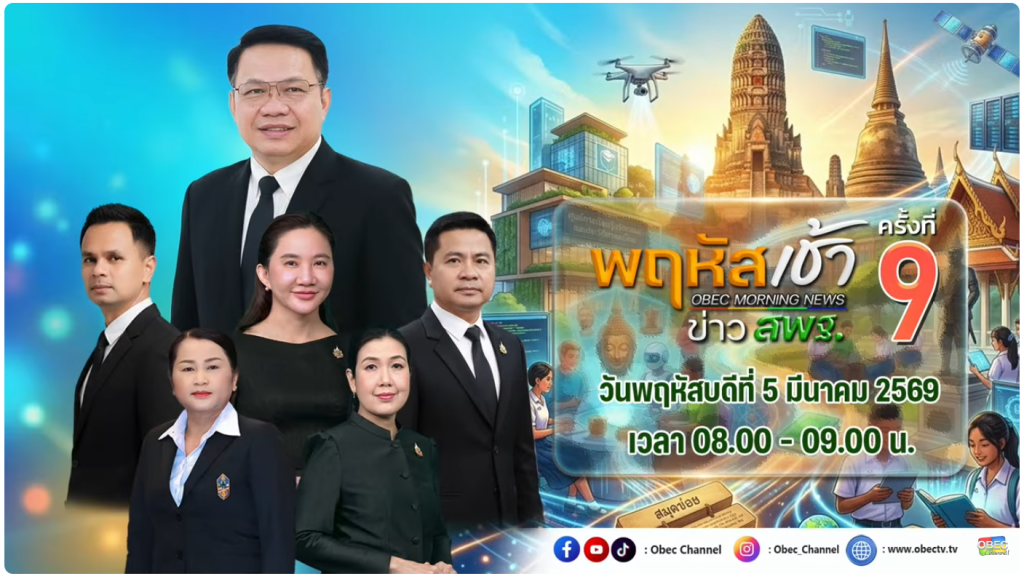 วันพฤหัสบดีที่ 5 มีนาคม 2569 เวลา 08.00 น. นางสาวกนกวรรณ การุญ รองผู้อำนวยการสำนักงานเขตพื้นที่การศึกษาประถมศึกษาปทุมธานี เขต 1 รักษาราชการแทนผู้อำนวยการสำนักงานเขตพื้นที่การศึกษาประถมศึกษาปทุมธานี เขต 1 พร้อมด้วยผู้อำนวยการกลุ่มและศึกษานิเทศก์ ร่วมรับชมรายการพฤหัสเช้า ข่าว สพฐ. ครั้งที่ 9/2569 ผ่านระบบออนไลน์ เพื่อรับทราบนโยบายจากสำนักงานคณะกรรมการการศึกษาขั้นพื้นฐาน (สพฐ.) นำสู่การปฏิบัติ ณ ห้องประชุมบัวชมพู สำนักงานเขตพื้นที่การศึกษาประถมศึกษาปทุมธานี เขต 1