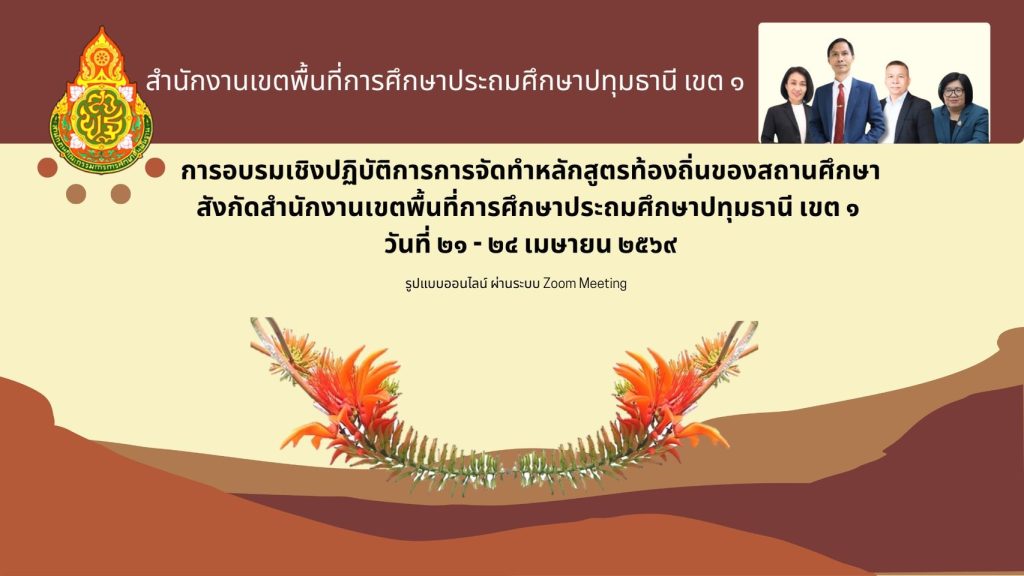 วันอังคารที่ 21 เมษายน พ.ศ. 2569 นายคำโพธิ์ บุญสิงห์ ผู้อำนวยการสำนักงานเขตพื้นที่การศึกษาประถมศึกษาปทุมธานี เขต 1 เป็นประธานเปิดการอบรมเชิงปฏิบัติการการจัดทำหลักสูตรท้องถิ่นของสถานศึกษา นายธนกฤต แก้วนามไชย รองผู้อำนวยการสำนักงานเขตพื้นที่การศึกษาประถมศึกษาปทุมธานี เขต 1 กล่าวรายงานวัตถุประสงค์การอบรม ซึ่งมุ่งเน้นให้ผู้เข้าร่วมการอบรมมีแนวทางในการจัดทำหลักสูตรท้องถิ่นของสถานศึกษา และดำเนินการตามปฏิทินการพัฒนาหลักสูตรท้องถิ่นของสถานศึกษา โดยมีตัวแทนครูในกลุ่มสาระการเรียนรู้ทุกกลุ่ม จำนวนกลุ่มสาระการเรียนรู้ละ 1 คน ตัวแทนครูกิจกรรมพัฒนาผู้เรียน จำนวน 1 คนหัวหน้างานวิชาการ โรงเรียนในอำเภอเมืองปทุมธานี และศึกษานิเทศก์ประจำกลุ่มอำเภอเมืองปทุมธานี เข้าร่วมอบรมในรูปแบบออนไลน์ Zoom Meeting