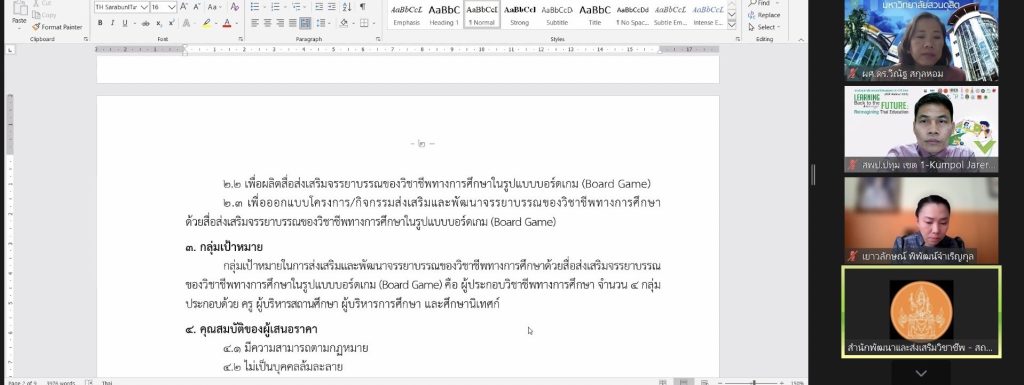 เมื่อวันที่ 24 มกราคม 2566 เวลา 13.30 น. ดร.กัมพล เจริญรักษ์ ผู้อำนวยการสำนักงานเขตพื้นที่การศึกษาประถมศึกษาปทุมธานี เขต 1 เข้าร่วมประชุมคณะกรรมการร่างขอบเขตของงานจ้างผลิตสื่อส่งเสริมจรรยาบรรณของวิชาชีพทางการศึกษาในรูปแบบบอร์ดเกมส์ (ฺBoard Game) ผ่านสื่ออิเล็กทรอนิกส์ออนไลน์ โดยแอปพลิเคชั่น Zoom Cloud Meeting